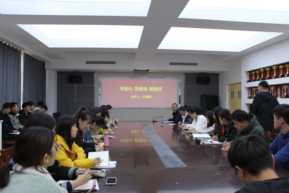11月9日,太阳成集团tyc33455党委副书记王春晓以《守初心、担使命、做榜样》为题,向全体学生党员及第25期入党积极分子讲“不忘初心、牢记使命”主题教育专题党课。