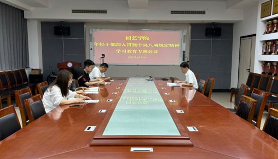 与会人员围绕习近平总书记关于加强党的作风建设的重要论述和中央八项规定精神进行了交流学习。隋成竹传达了学校全面从严治党工作会暨警示教育会精神,领学了党员干部违规吃喝等警示教育案例。全体年轻干部结合工作实际,依次交流了学习体会。