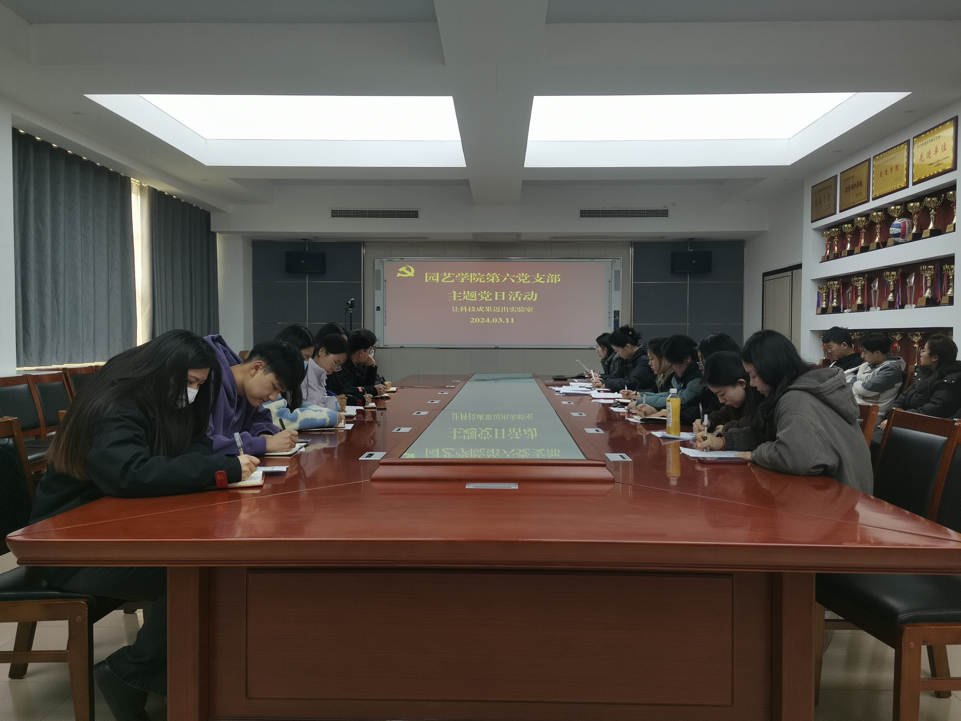 3月11日上午,太阳成集团tyc33455第六(学生)党支部在生物楼N306开展“让创新成果迈出实验室”主题党日活动,支部全体党员参加会议。