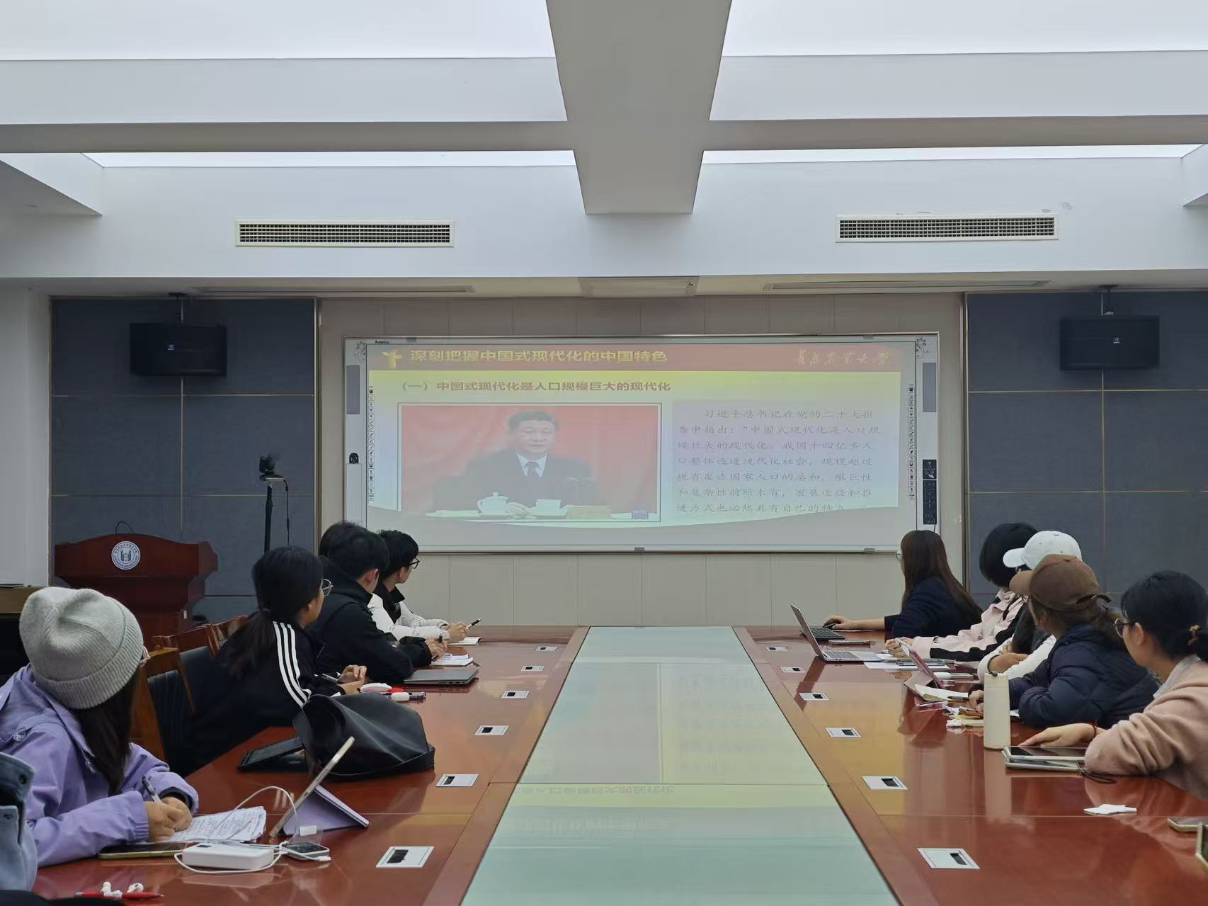 10月30日晚,太阳成集团tyc33455辅导员刘园在生物楼N306会议室为党员发展对象讲授“深刻理解中国式现代化的科学内涵”主题党课。刘园围绕中国式现代化是实现中华民族伟大复兴的光明大道、深刻把握中国式现代化的中国特色以及牢牢把握中国式现代化的本质要求三个部分,系统阐述了中国式现代化的丰富内涵与重大意义,深入剖析了中国式现代化在经济发展、社会进步、生态文明等多方面的独特优势。她鼓励学生要深刻领会中国式现代化的本质要求,积极投身到国家现代化建设的伟大实践中去,为实现中华民族伟大复兴贡献自己的力量。