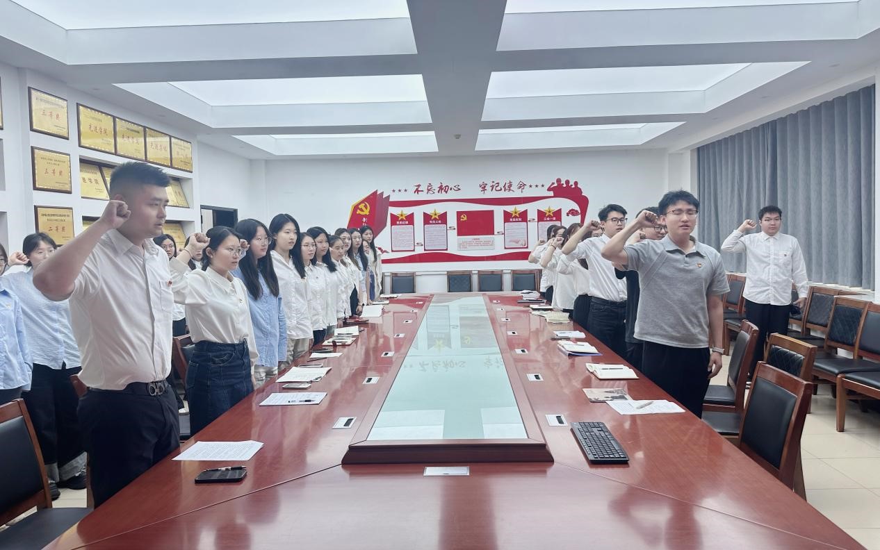 最后,全体党员同志在毕业生党员张亚朝带领下重温了入党誓词。