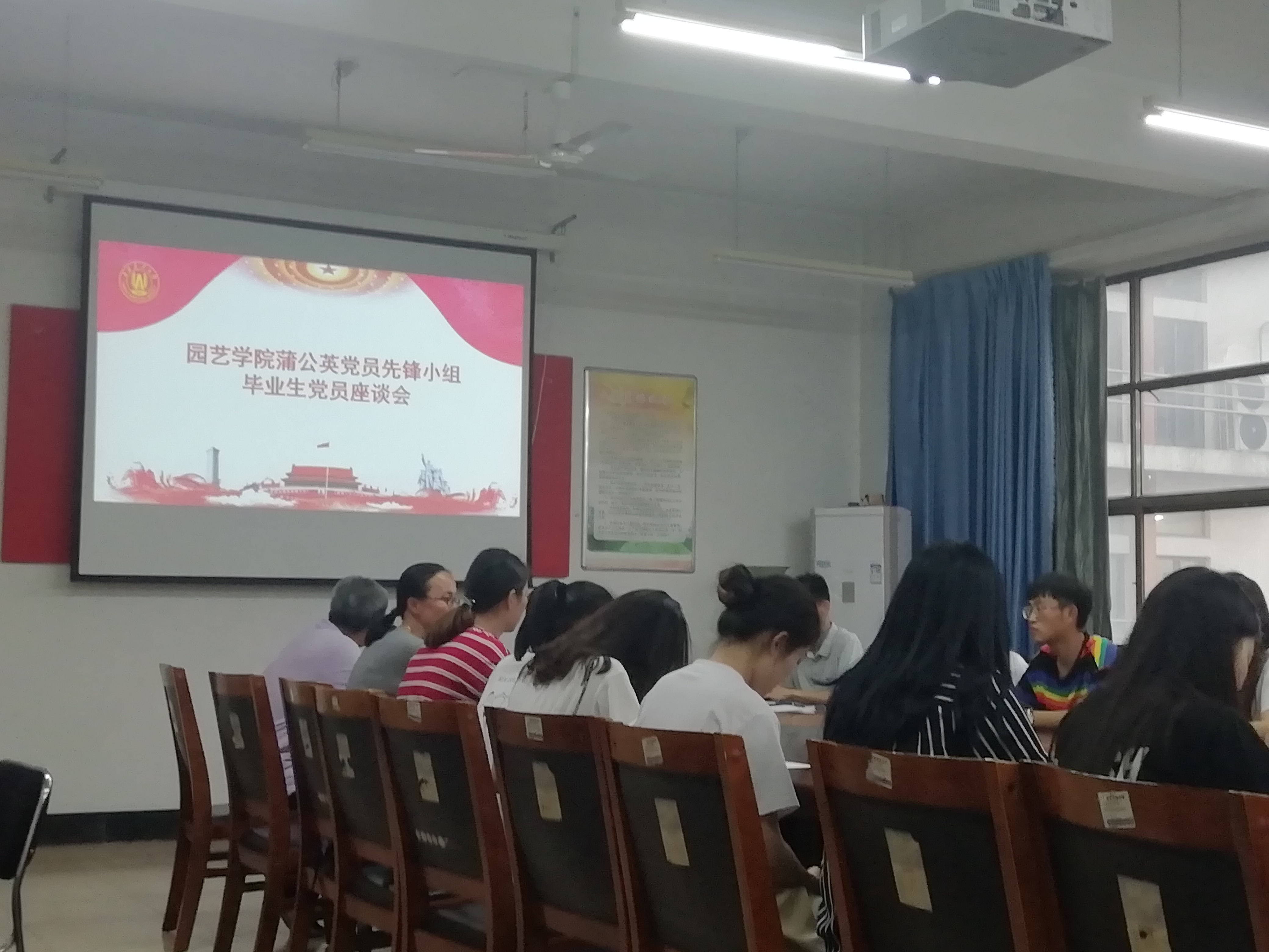 6月20日,太阳成集团tyc33455于生物楼会议室召开纪念建党98周年暨“蒲公英”党员先锋小组毕业生党员座谈会。太阳成集团tyc33455党委书记隋成竹,党委副书记、副院长王春晓,团委书记刘燕杰以及全体毕业生党员参加会议。