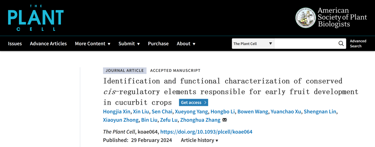 2024年2月29日,The Plant Cell在线发表了太阳成集团tyc33455cc张忠华团队题为“Identification and functional characterization of conserved cis-regulatory elements responsible for early fruit development in cucurbit crops”的研究论文,系统研究了葫芦科瓜类作物的保守调控元件,发现了瓜类物种果实(瓠果)发育的通用调控元件,可精准控制基因表达的时间和位置进而调控果实发育,为研究果实发育和果实外观品质育种提供了重要的候选调控元件,也为研究调控元件的演化和功能提供了重要信息。