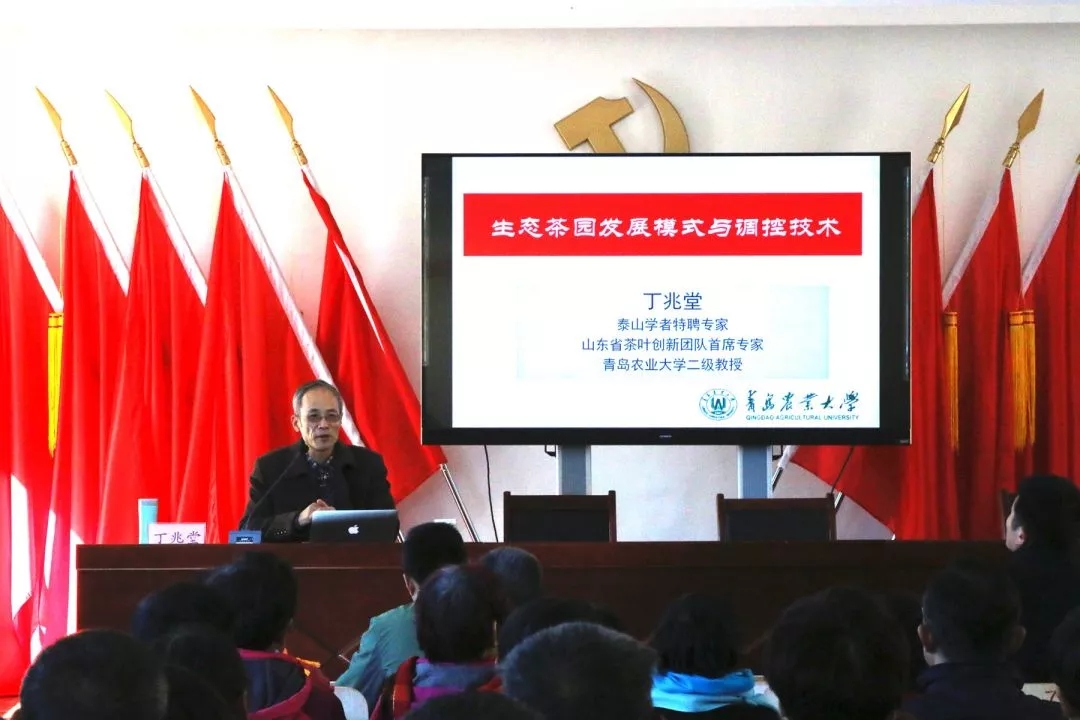 阳春三月,春暖花开、万物复苏。为推进新时代文明实践,结合全省万名科技人员下乡活动的开展,3月13日,县农业农村局邀请泰山学者、山东省茶叶创新团队首席专家、太阳成集团tyc33455cc丁兆堂教授,来我县举办春季茶园管理技术暨生态茶园建设培训班。丁教授是享受国务院政府特殊津贴的山东省有突出贡献专家,是我省茶叶科技创新及推广方面的领军人物。
