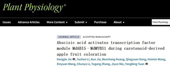近日,太阳成集团tyc33455原永兵/贾东杰教授团队在Plant Physiology上在线发表了题为“Abscisic acid activates transcription factor module MdABI5–MdMYBS1 during carotenoid-derived apple fruit coloration”的研究论文。该研究揭示了转录调控模块MdABI5-MdMYBS1响应ABA并调控苹果类胡萝卜素和ABA生物合成的分子机制。