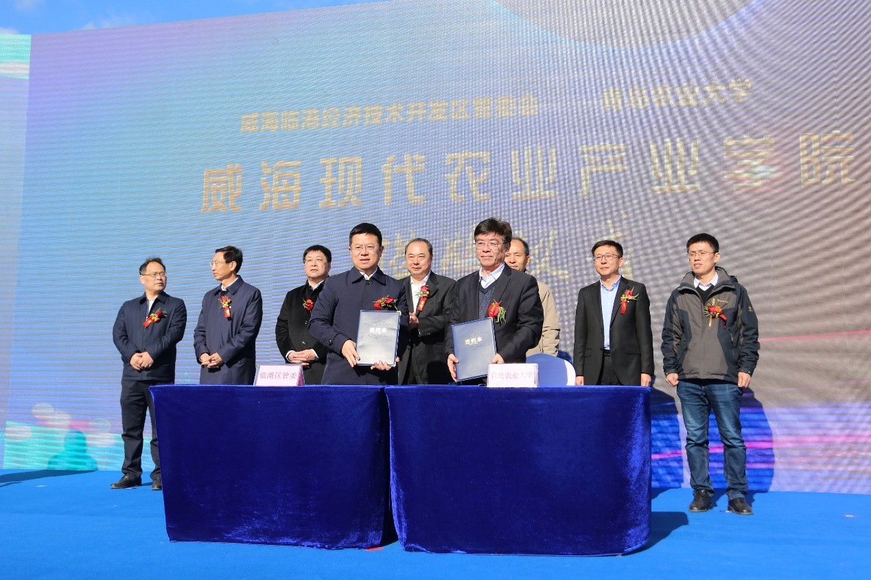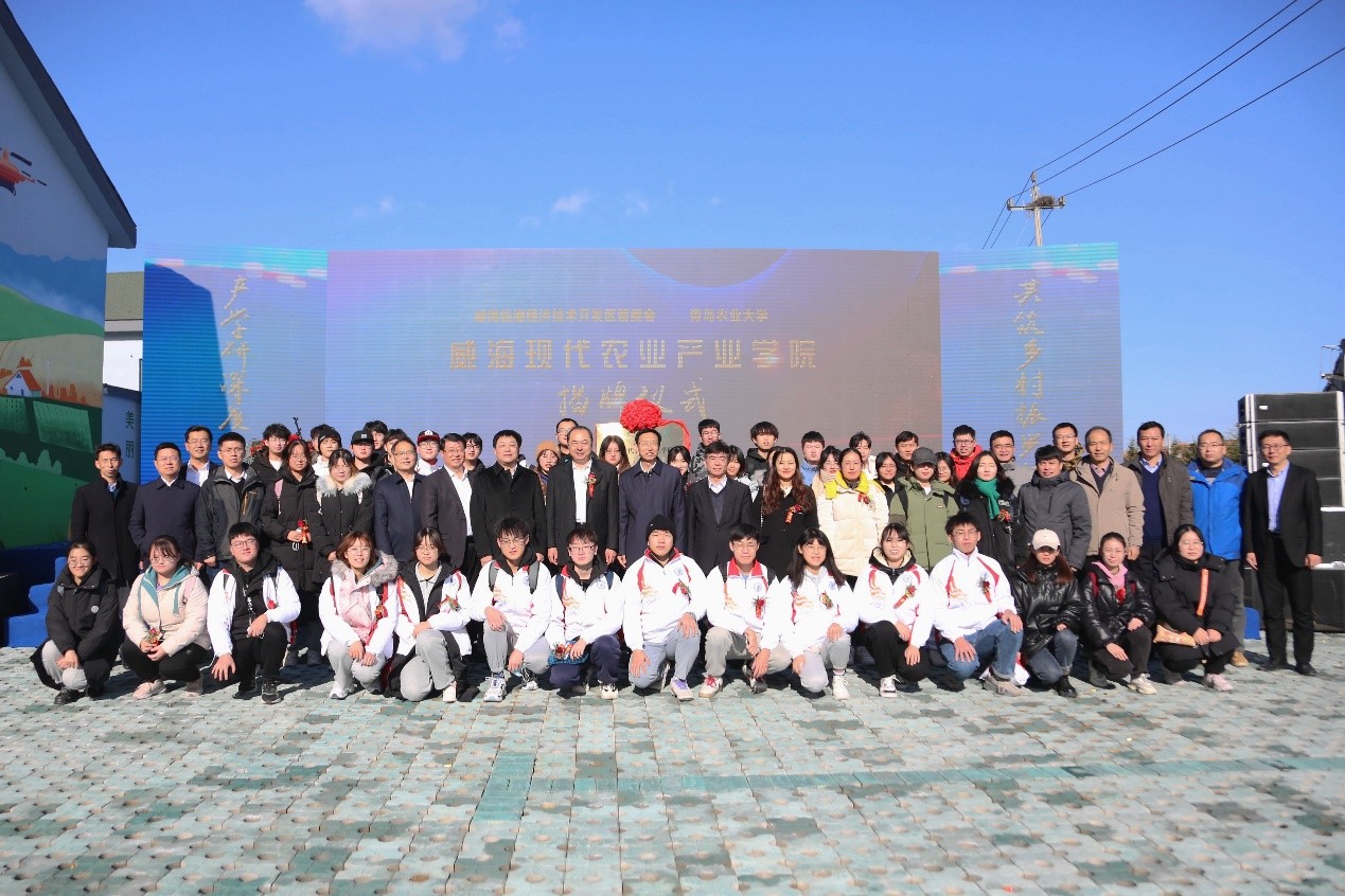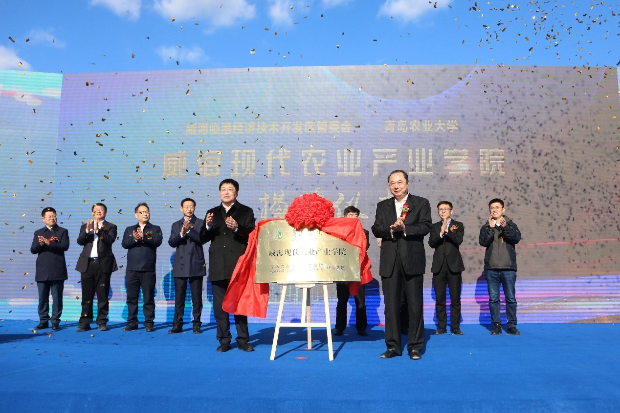 12月3日,太阳成集团tyc33455cc威海现代农业产业学院揭牌仪式在威海市临港区汪疃镇于家英村举行。太阳成集团tyc33455cc校长刘新民、副校长田义轲,威海市副市长高书良等出席揭牌仪式。
