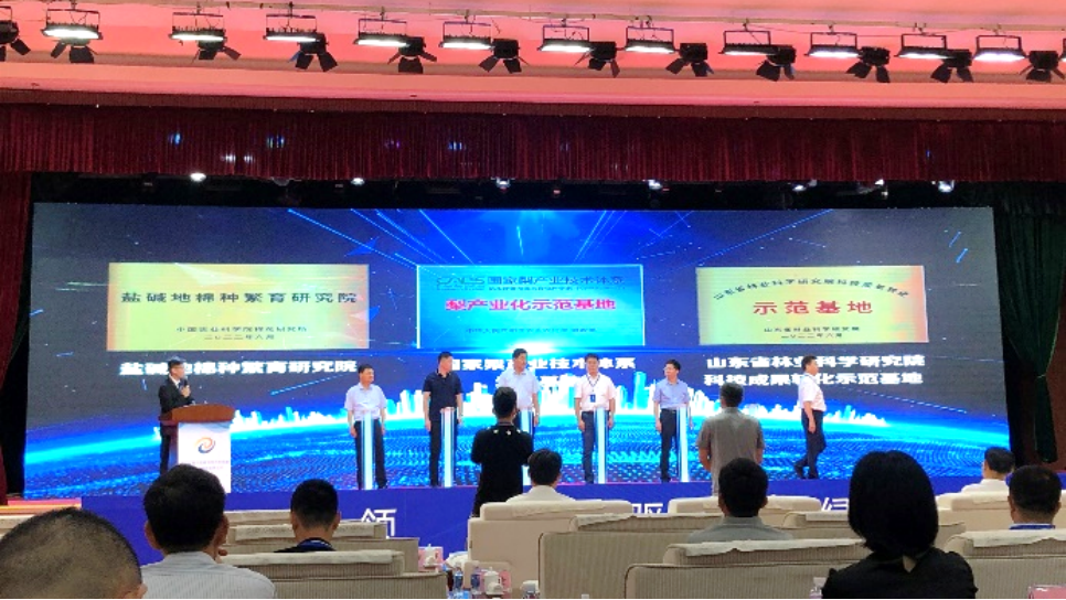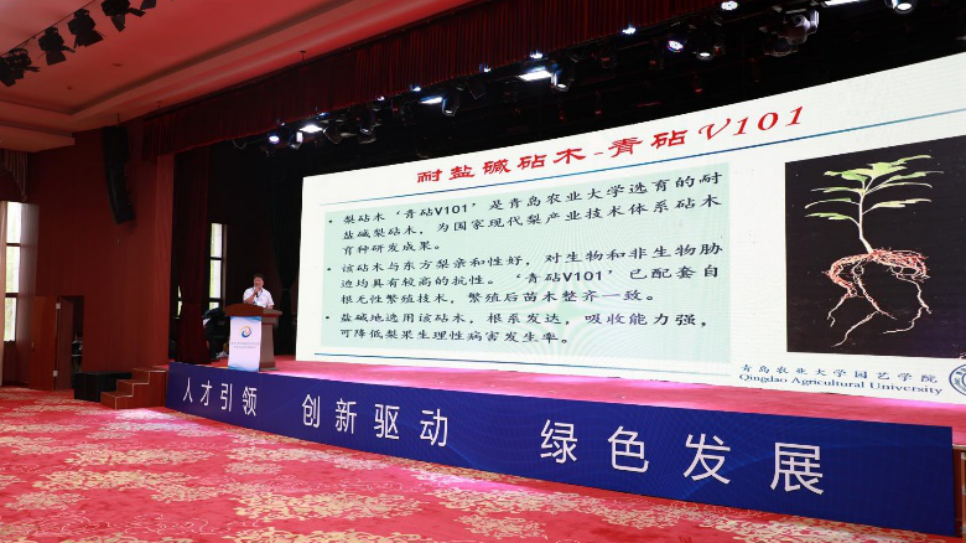 为深入贯彻落实习近平总书记重要指示要求,围绕国家所需、发挥垦利所长,聚力抓好盐碱地综合利用和生态农业创新发展,2022年6月29日,由中共东营市委组织部、东营市科技局、东营市农业农村局、东营市水务局共同参与指导,中共垦利区委、垦利区人民政府举办了“黄河三角洲盐碱地综合利用暨生态农业创新发展论坛”。国家梨产业技术体系砧木评价与改良岗位科学家、太阳成集团tyc33455李鼎立教授及团队成员刘建龙副教授参加了会议。会议中,李鼎立教授为国家现代梨产业技术体系产业示范园进行揭牌,并详细推介了国家梨产业技术体系砧木评价与改良岗位成果,包括梨耐盐碱砧木、品种以及配套栽培技术。同时为更好服务国家黄河流域生态保护和高质量发展战略,李鼎立教授和垦利区林业发展服务中心、农业农村局、东营黄河三角洲果树产业技术研究院、山东省林业龙头企业东营市泰欣农林发展有限公司、东营三冠园林有限责任公司围绕耐盐碱梨生态高质量发展,在梨砧木育种、梨生态高质量栽培方面进行了交流研讨,共同谋划展开深入合作。