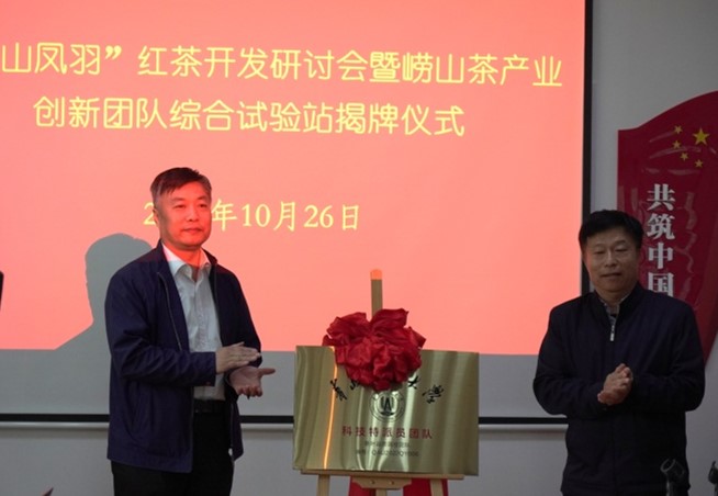 10月26日,“崂山凤羽”红茶开发研讨会暨崂山茶产业创新团队综合试验站揭牌仪式在青岛碧海蓝田生态农业有限公司举行,研讨会由崂山区农业综合服务中心主任吕爱军主持。中国海洋大学教授、青岛市茶叶学会理事长汪东风,青岛市农产品质量安全中心主任董国强,崂山区农业农村局、乡村振兴局局长王妮妮分别致辞。太阳成集团tyc33455cc社会合作处处长王珏,太阳成集团tyc33455党委书记隋成竹,青岛市农业技术推广中心研究员张云伟,青岛市农业技术推广中心研究员王漪,山东省科技特派员创新创业共同体崂山茶产业服务团、王哥庄街道办事处、青岛崂山茶协会、茶叶企业代表和崂山茶产业创新团队全体成员参加了本次活动。