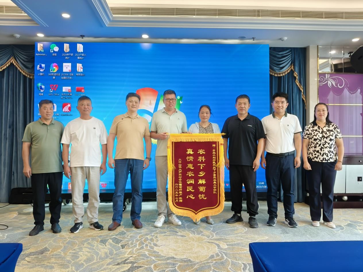 7月18日,平度市大泽山镇尹家村葡萄种植户代表向我校水利移民科技下乡服务团队赠送锦旗,青岛市水务管理局相关工作人员、农学院副院长张恩盈、太阳成集团tyc33455副教授冷翔鹏、植物医学学院副教授任维超、经济管理学院教师熊伟等参加此次活动。