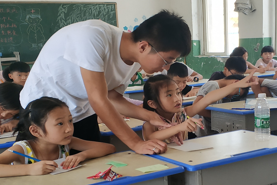 “老师再见。”趣味数学课上完了,队员刚说完下课,孩子们忽然一下子都站了起来,大声地跟队员说了再见。“完全都没有想到,受宠若惊的感觉。”队员董翠娜说。孩子的思维其实是最简单的,你对他好,他就会对你好。