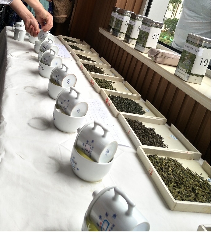 (3)评茶大赛(总分100分):模块一、茶形辨认(30%):通过茶样外形因子(形状、色泽)辨认茶样。模块二、香味排序(30%):通过单一因子香气和单一因子滋味判断四只编码茶样质量高低,并按照品质高低进行排序。模块三、品质审定(40%):按照五项因子即“外形、汤色、香气、滋味与叶底”对茶样进行描述并计分。