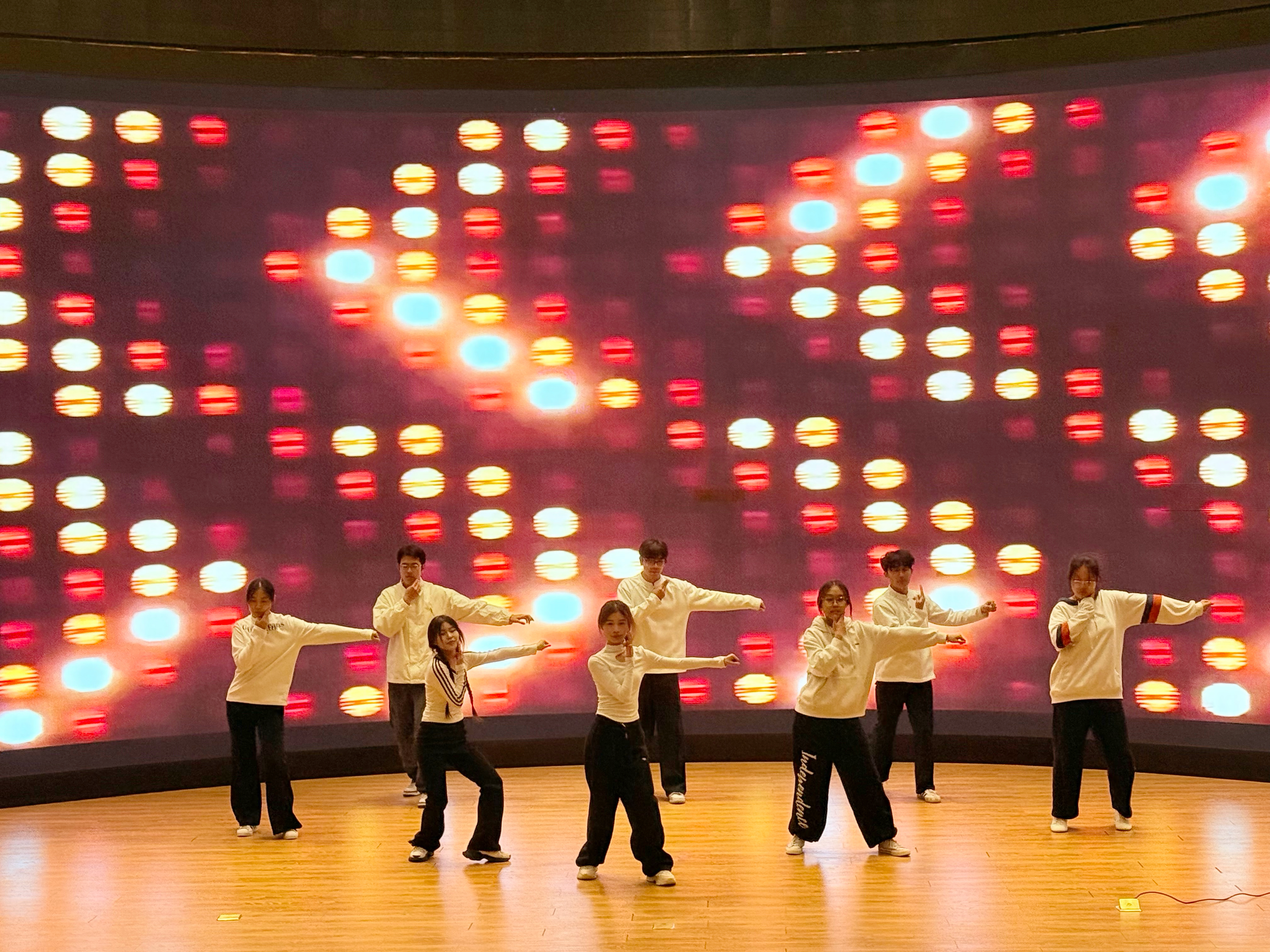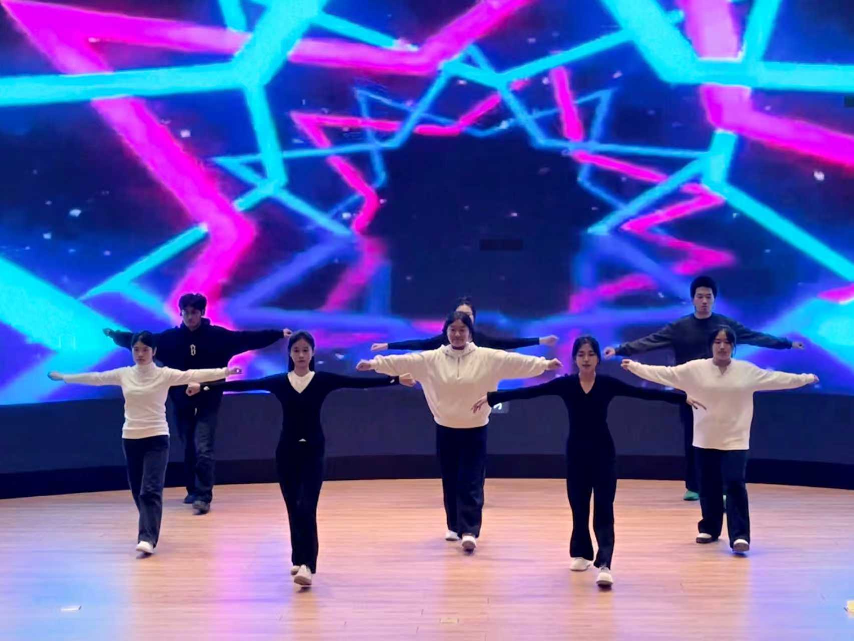 11月27日晚,太阳成集团tyc33455在平度校区明德楼报告厅举办“跃动青春,聚力同行”大学生校园健身操比赛,辅导员刘园、张钰扬及2025级学生参加活动。