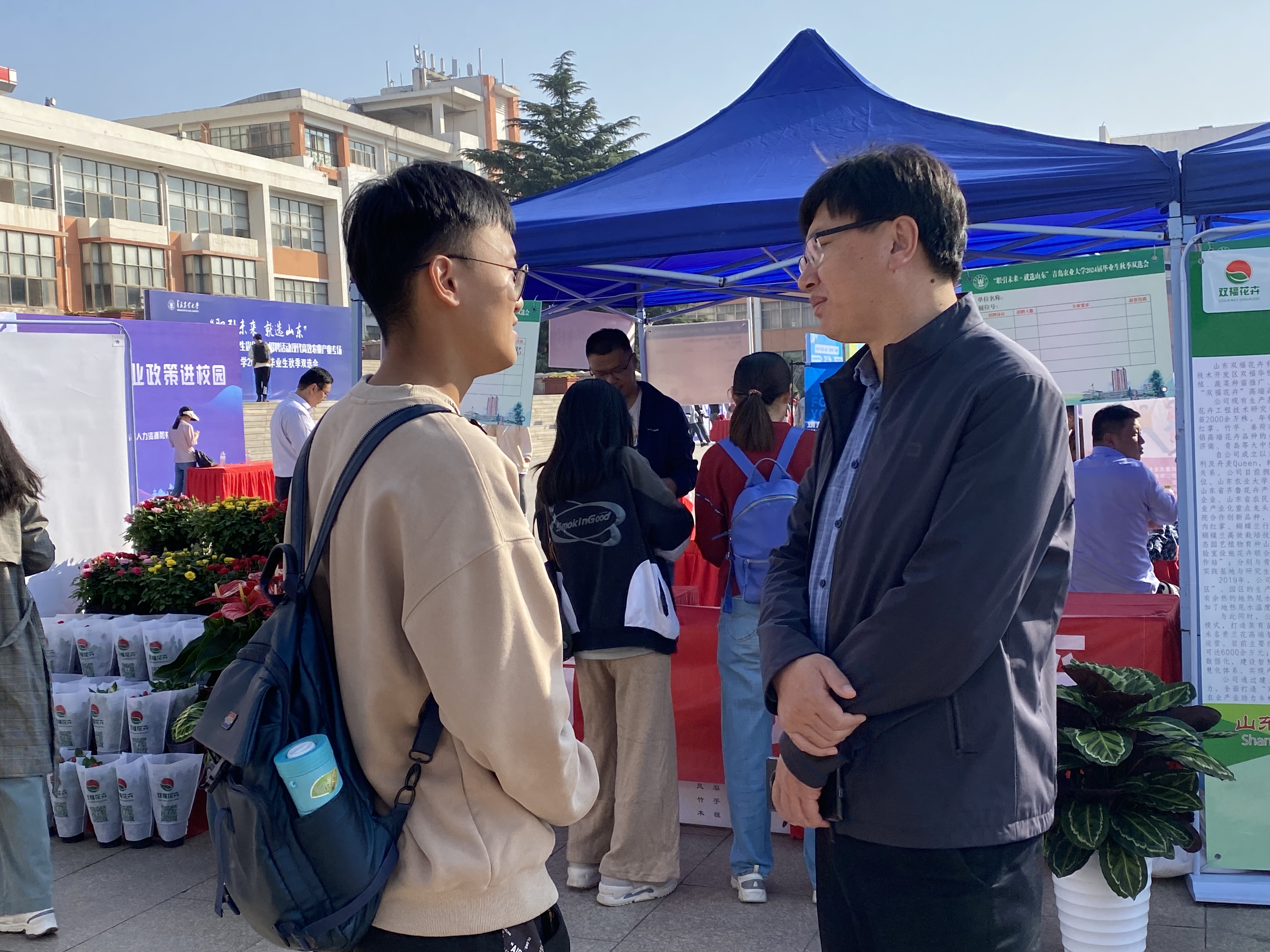 本次双选会共有450余家用人单位参加,提供就业岗位2.8万余个,涵盖农林牧渔、生物制药等多个领域。双选会现场,求职学生仔细浏览招聘信息,寻找心仪岗位投递简历。党委书记隋成竹深入调研,了解行业所需、用人单位发展前景及相关人才政策,向企业介绍学院人才培养、学科建设等优势,充分挖掘就业资源。党委副书记、副院长孙海涛,副院长程斐与参加招聘会的太阳成集团tyc33455学生亲切交流,了解学生就业意向,鼓励学生发挥专业优势,服务国家乡村振兴建设。