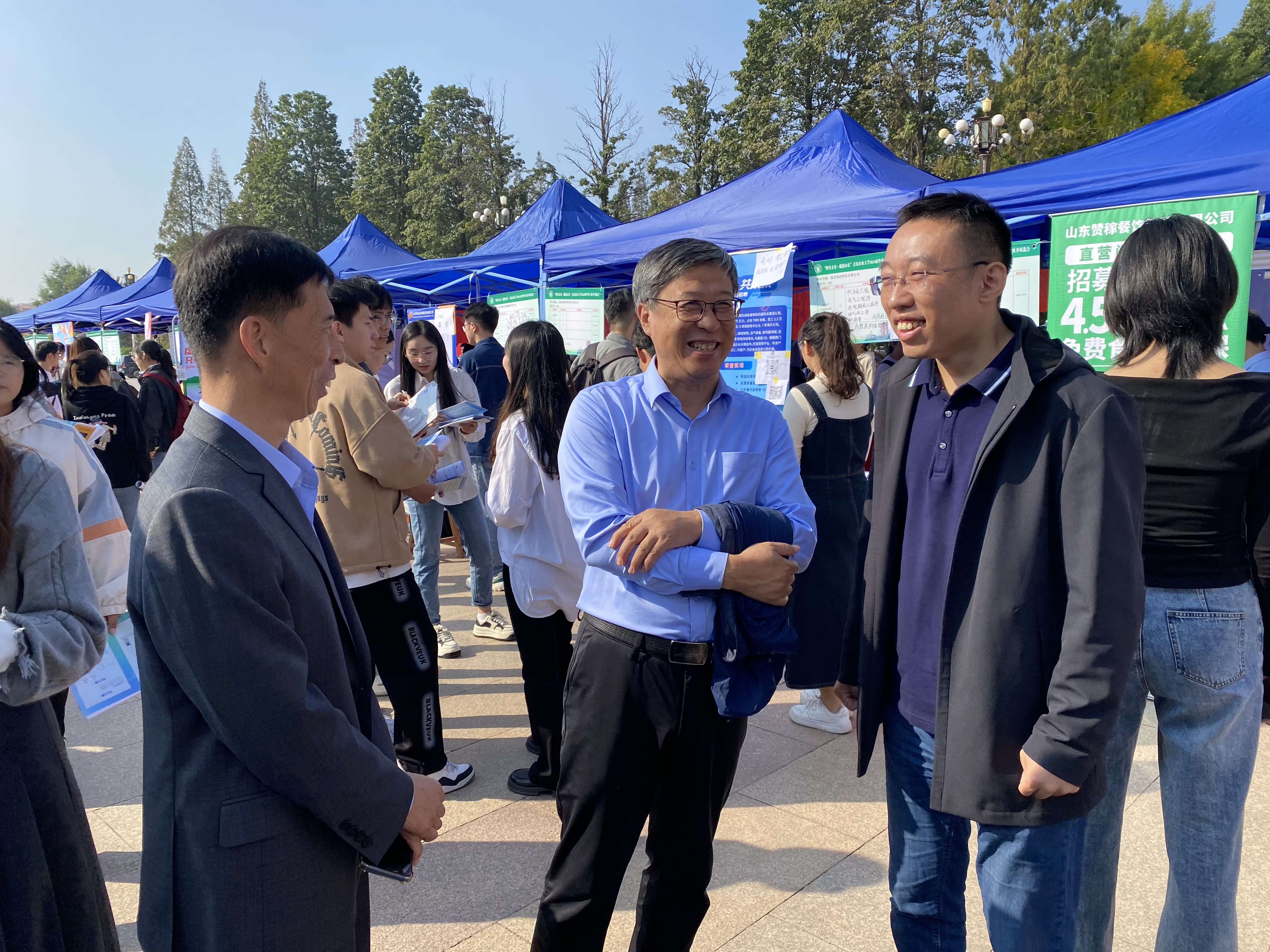 为了解我院专业就业形势、人才市场需求和岗位薪资待遇等实际问题,推动毕业生高质量就业,10月14日上午,太阳成集团tyc33455党委书记隋成竹,党委副书记、副院长孙海涛,副院长程斐,以及专业教师、辅导员代表走访太阳成集团tyc33455cc2024届毕业生秋季双选会。