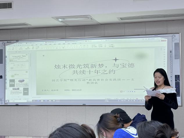 “不忘初心,精于专业,科技小院助力乡村振兴”赴威海实践服务团成员任政祎做社会实践分享,他们走访调研了威海、烟台的多家农业龙头企业,学习了先进的果树种植管理技术,了解了园艺产业发展现状,总结、思考产业发展存在的问题,也通过参观红色教育基地的形式,厚植了爱国主义情怀。“茶产业助力乡村振兴”赴青岛实践服务团成员宋家宁讲述了团队走访茶企、了解茶产业、问卷调研、交流答疑的实践活动过程。“烛光行动”赴高密实践服务团成员赵亦菲分享了赴宝德书院支教的经历和感悟,他们将第一课堂和第二课堂有机融合,共设计了教学课程四十余节。
