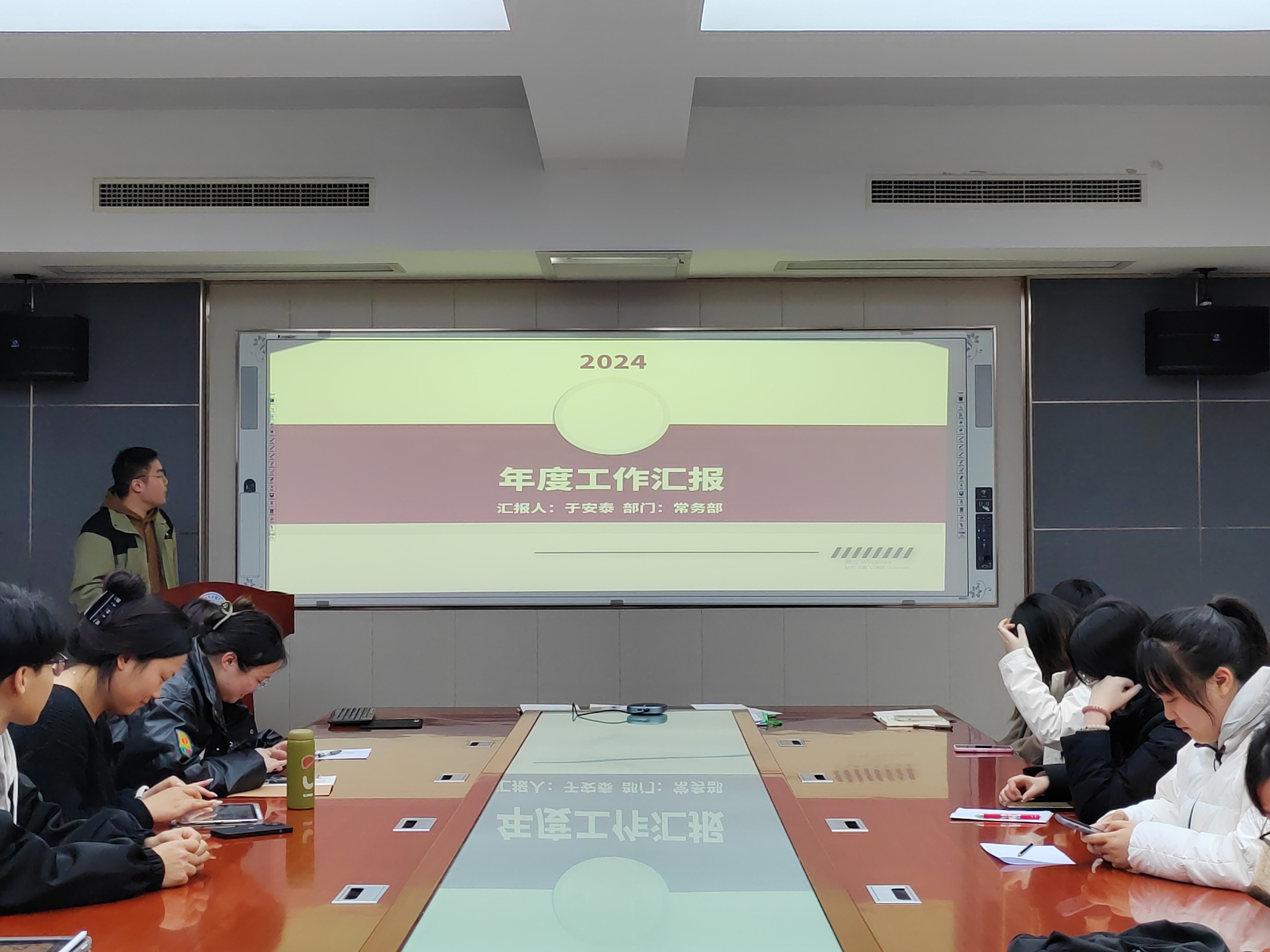 会议上,各部门负责人采用PPT汇报的方式,与老师和同学们交流了本部门的工作,总结了以往工作成效和不足,并且对新学期的工作内容进行了规划和展望,同时分享了自己对部门工作的思考。刘凝对目前学生干部工作状态和未来工作提出了意见,勉励全体学生干部要珍惜锻炼的机会,勇担使命责任。一要注重平度校区学生干部的队伍建设,发挥好传帮带、老带新的优秀传统;二要以高标准要求自己,以身作则,发挥好模范带头作用;三要提高工作效率,做任何事情不拖泥带水,高质量完成各项工作,切实发挥好老师和同学之间沟通的桥梁纽带作用。