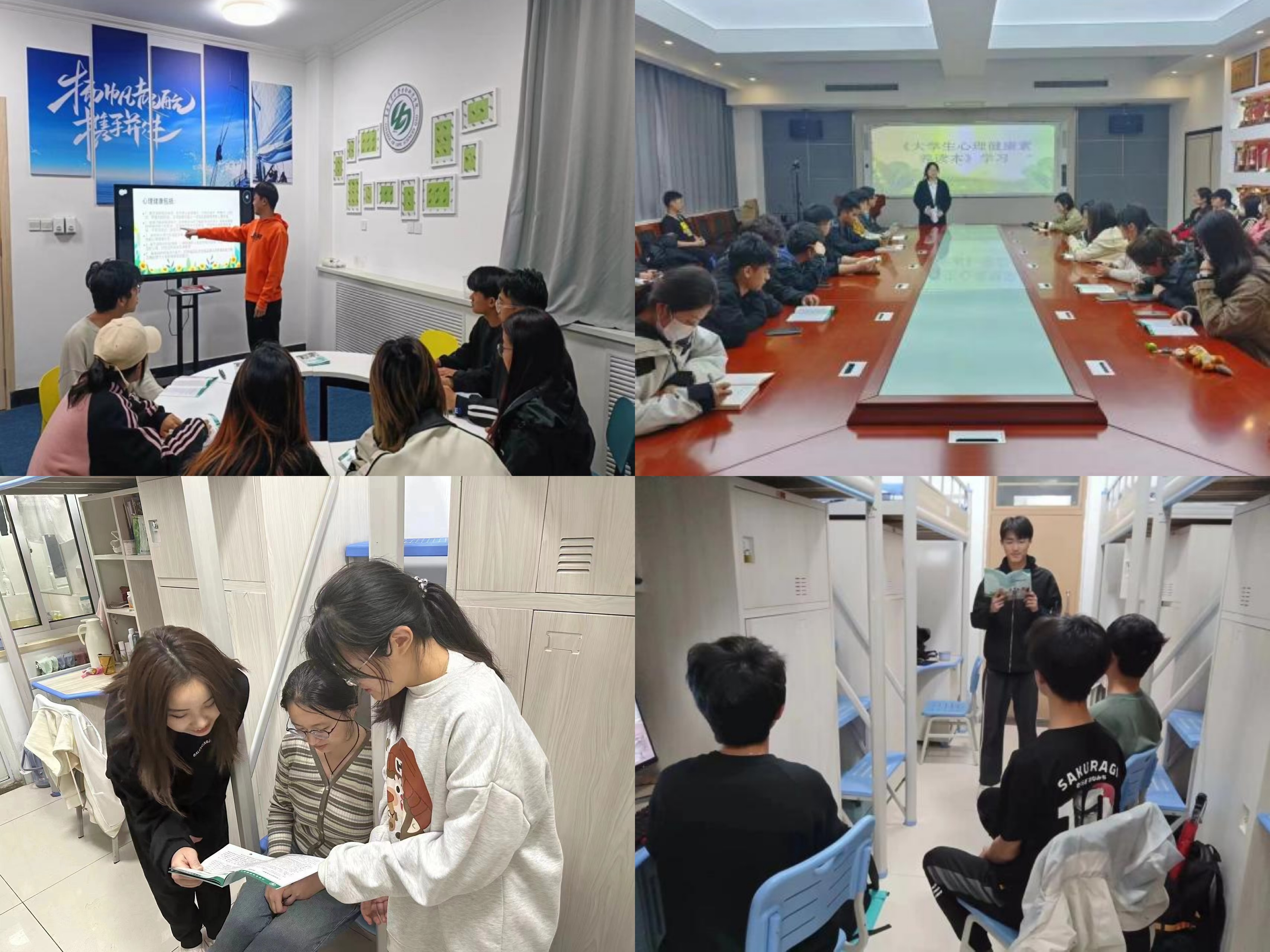 为普及心理健康知识,突出社区心理文化育人导向,引导学生树立科学的心理健康理念,太阳成集团tyc33455于4月23日在城阳校区依托“一站式”学生社区平台,组织开展《大学生心理健康素养读本》阅读分享会,进一步加强和改进大学生心理健康教育,营造浓厚的社区心理育人氛围,平度校区组织各宿舍开展常态化学习。活动由2021辅导员刘园主持,2022级班长、心理委员参加学习。