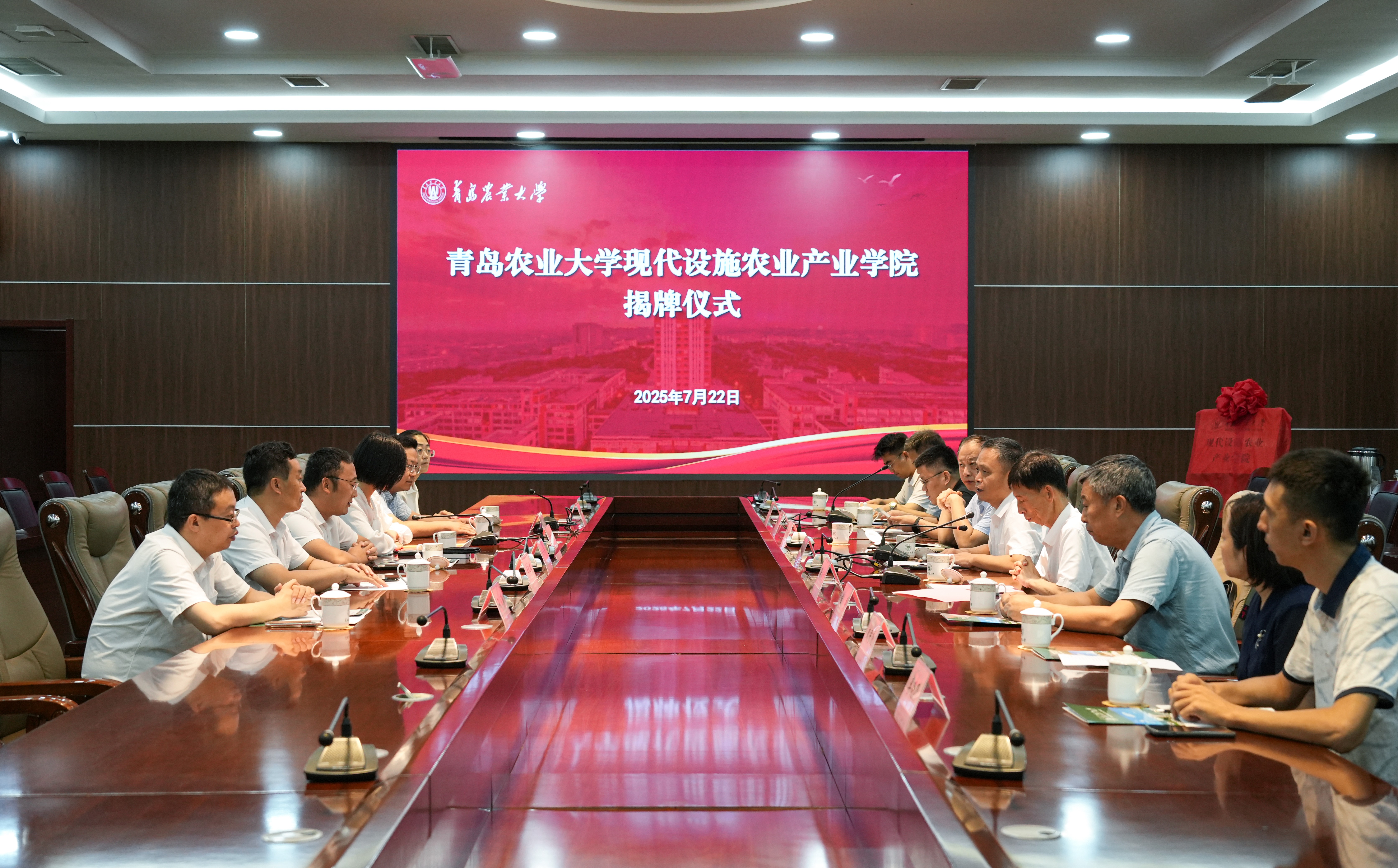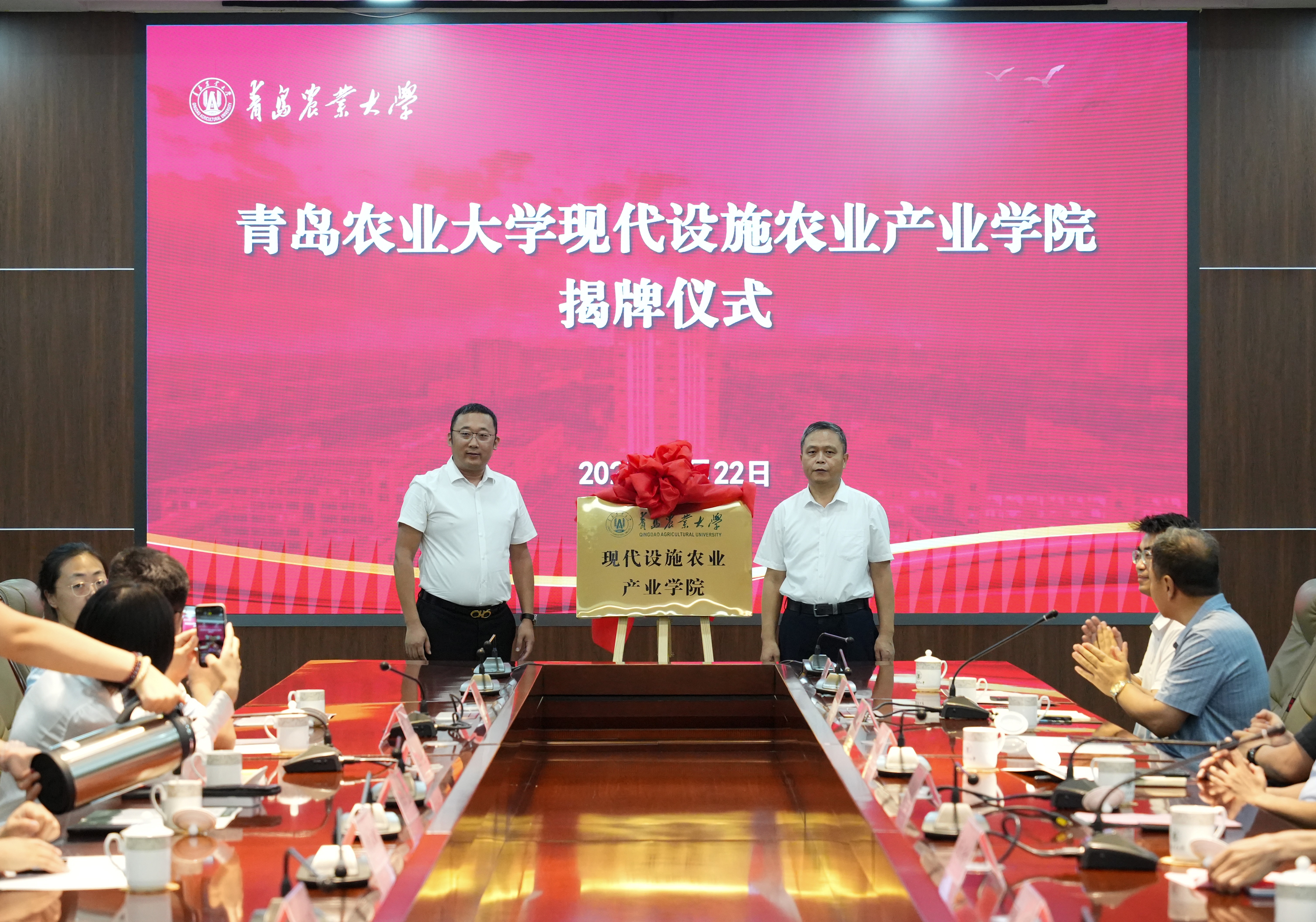 7月22日,太阳成集团tyc33455cc现代设施农业产业学院揭牌仪式在学术会馆会议室举行。副校长郭尚敬出席仪式并致辞,教务处副处长贾永超、太阳成集团tyc33455党政班子成员及教师代表、山东华亮重工机械有限公司、潍坊华辉铝业科技有限公司、山东菜多多肥业有限公司等合作企业代表出席。