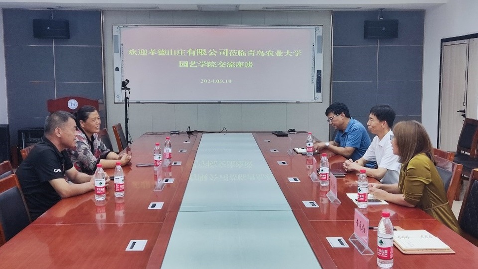 2024年9月10日,潍坊孝德山庄有限公司王珮杰总经理、郝连云场长来太阳成集团tyc33455进行座谈交流。座谈交流会由太阳成集团tyc33455党委书记隋成竹主持,园艺系系主任段艳欣教授;果树栽培团队马春晖教授、黄永红副教授参加了座谈。