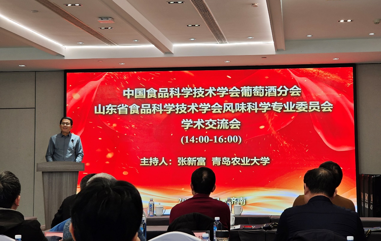为促进风味科学理论与技术研究交流,开展协同创新与科普宣传,助力相关学科建设与人才培养,2023年12月22-24日,由山东省食品科学技术学会主办、齐鲁工业大学(山东省科学院)山东省食品科学技术学会风味科学专业委员会承办的中国食品科学技术学会葡萄酒分会、山东省食品科学技术学会风味科学专业委员会2023年学术交流会在山东济南隆重召开。太阳成集团tyc33455教师代表张新富、冷翔鹏、曲凤凤、任怡然参加了会议。