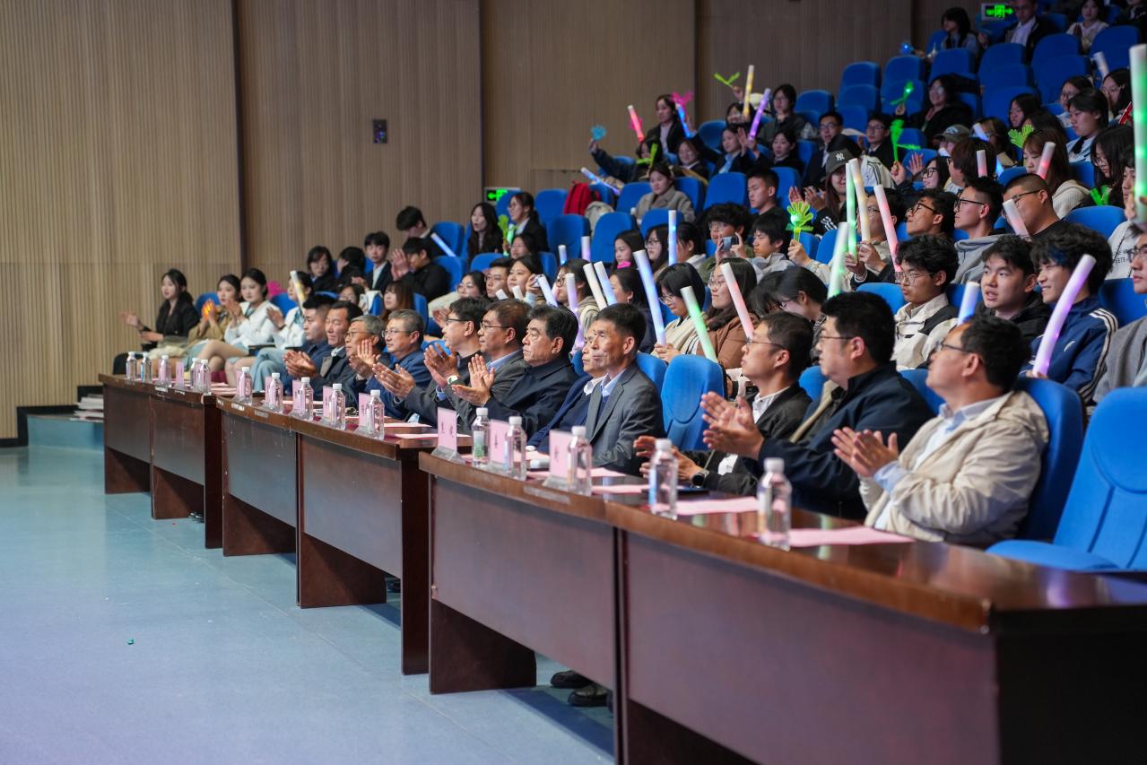 第二篇章“青春筑梦·艺彩飞扬”持续升温。《tomboy》舞步强劲有力,舞台张力十足,将现场气氛推向高点。相声《此间少年此间大学》紧扣校园生活,风趣幽默的台词引得全场笑声连连。情景剧《请为我停留》聚焦成长心路,告诉我们真正的温暖,是我愿意停下脚步,走进你的无声世界。随后,对省、市级先进个人、国家奖学金、科创竞赛国家级奖项进行表彰,进一步激发全体学生见贤思齐、勇攀高峰的动力。引导学生以先进为典范,在专业领域深耕细作,在实践舞台锤炼本领,以青春的热情与实干诠释园艺学子的责任担当。