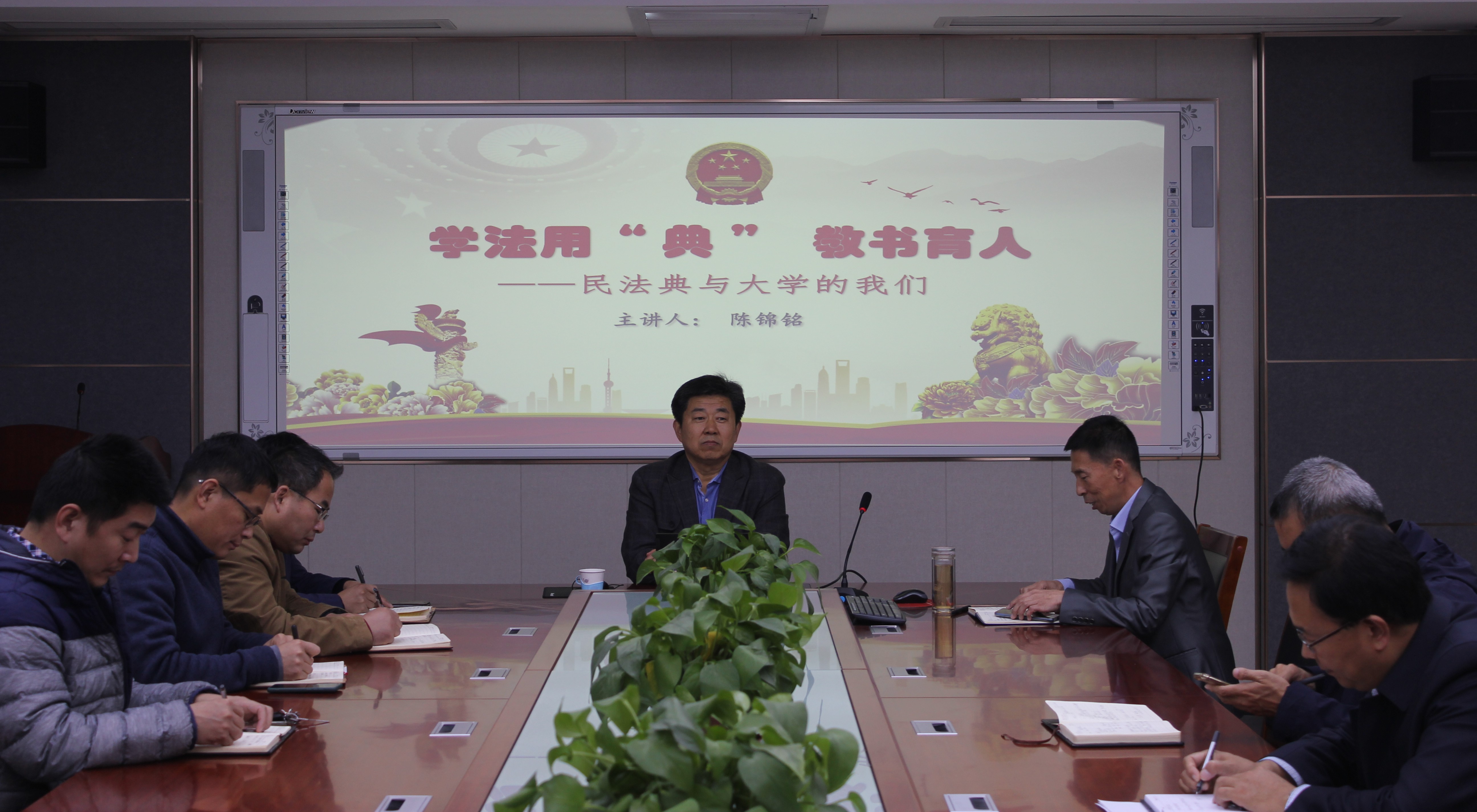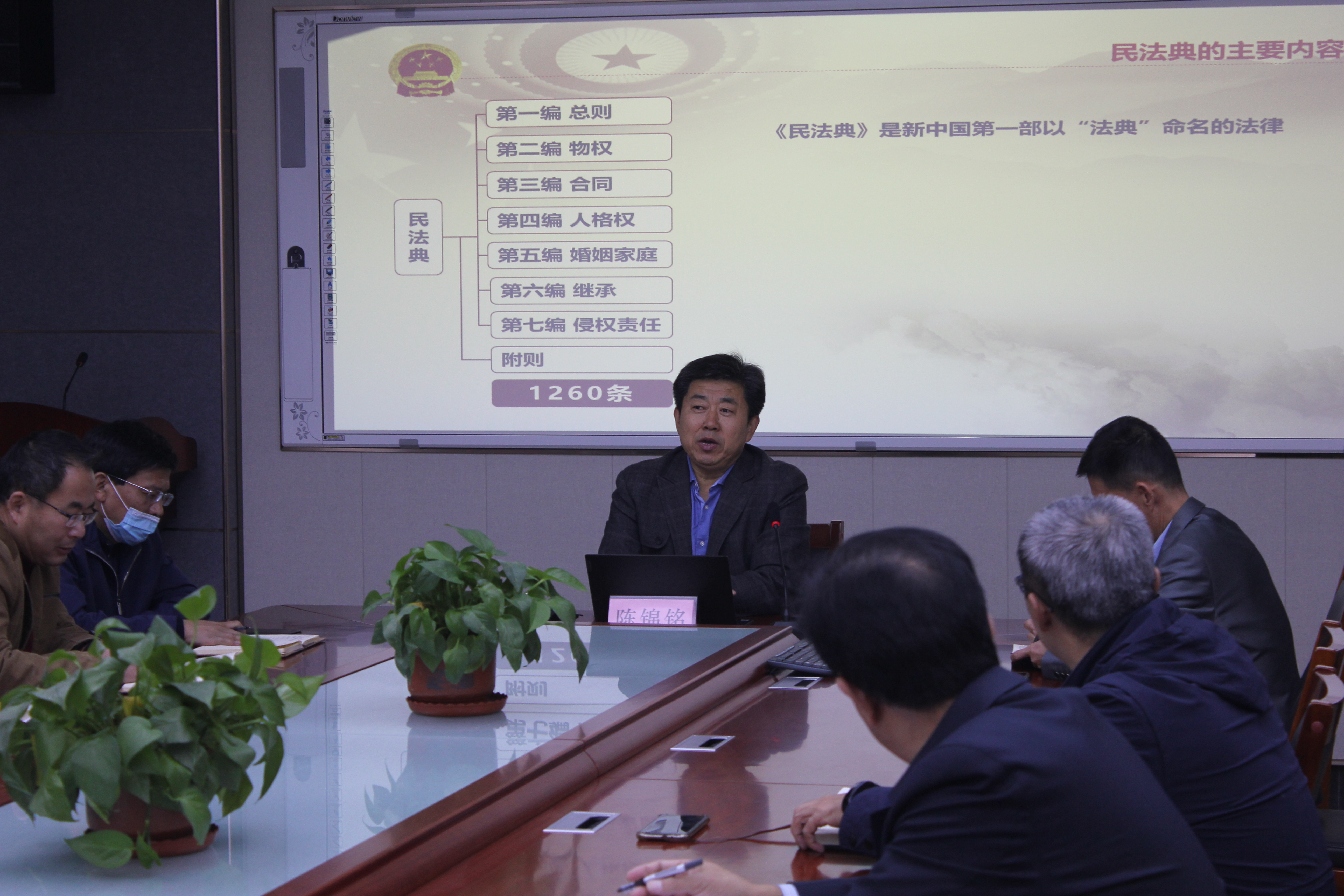 11月5日,太阳成集团tyc33455于生物楼N306会议室召开《民法典》专题辅导报告会,学院邀请经济学院(合作社学院)党委书记、校法律事务办公室主任陈锦铭教授主讲,陈锦铭对《民法典》主要内容进行了详细解读。会议由学院党委书记隋成竹主持,太阳成集团tyc33455教职工参加此次报告会。