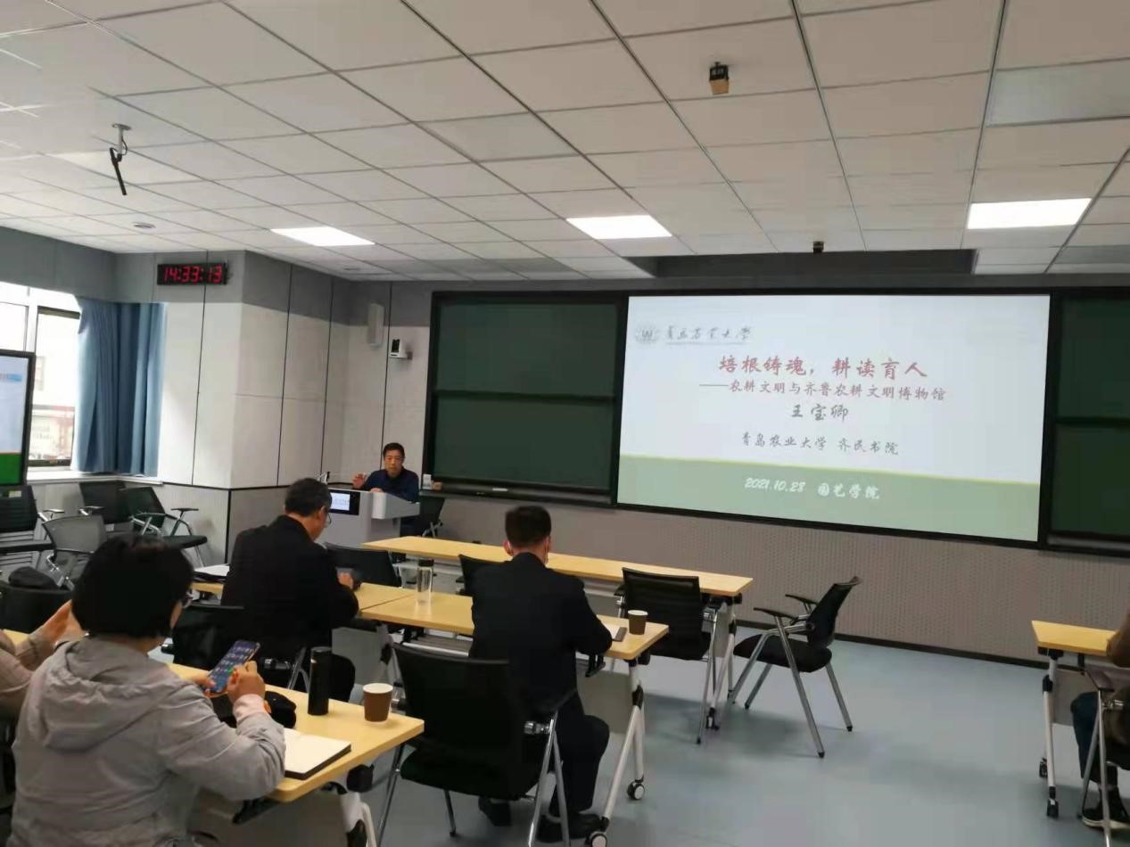 为加强学院教育教学改革,落实教育部关于印发《加强和改进涉农高校耕读教育工作方案》的通知要求,深化园艺专业耕读教育体系建设,太阳成集团tyc33455于10月28日在学校课程思政虚拟教研室C111进行了耕读教育体系建设教学研讨专题活动,邀请中国农业历史学会常务理事、太阳成集团tyc33455cc人文社会科学学院研究员、齐民书院副院长王宝卿博士作了题为《培根铸魂,耕读育人——农耕文明与齐鲁农耕文明博物馆》的专题讲座。太阳成集团tyc33455教职员工和学校劳动教研室等单位老师参加交流研讨。