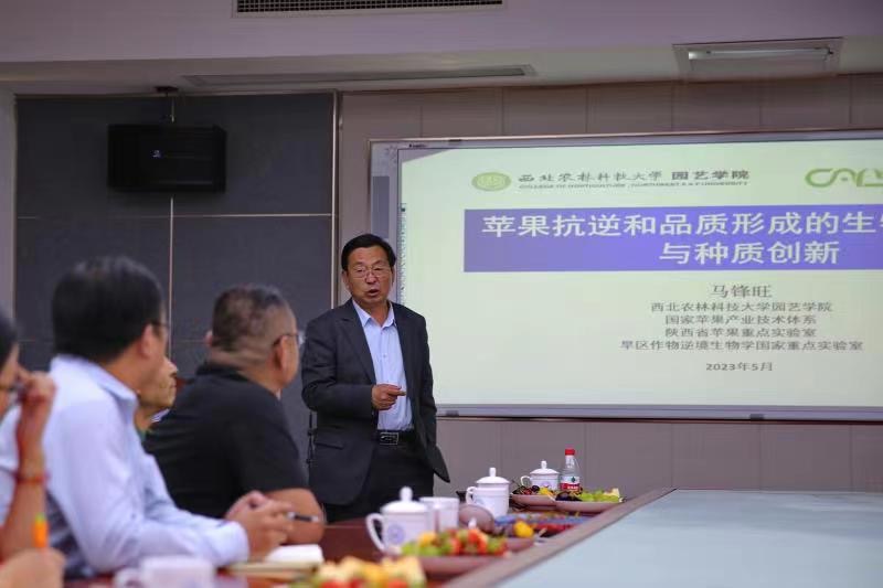 为学习贯彻习近平新时代中国特色社会主义思想,推动主题教育走深走实,5月11日下午,国家苹果体系首席科学家、西北农林科技大学教授马锋旺于生物楼N306讲授关于苹果抗逆和品质形成的生物学基础与种质创新学术报告,太阳成集团tyc33455院长张忠华教授、原永兵教授、张玉刚教授、郑晓东教授,学院部分果树学师生代表参加本次报告会。会议由张忠华教授主持。