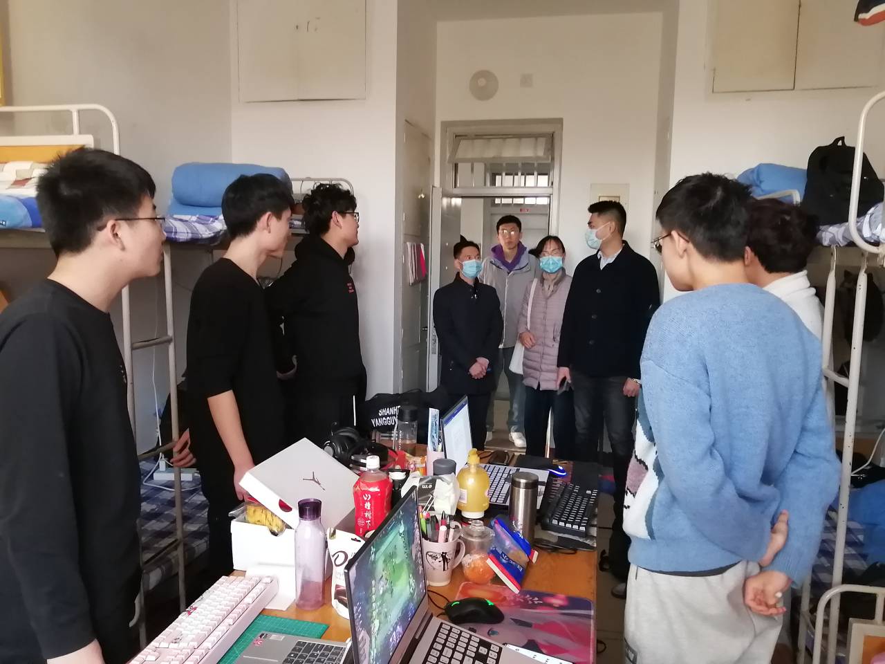走访过程中,学工办老师们仔细的询问了各宿舍成员的返校情况,并仔细询问了返校路程中学生们是否做好防护措施,有无特殊情况,并叮嘱学生们做好平时的安全防控工作。对于未返校的同学,学工办老师们仔细询问了原因并叮嘱同宿舍学生与未返校同学保持联系,避免突发状况的发生;并为同学们新学期学习加油鼓劲。最后学工办老师老师嘱咐学生们要保持宿舍卫生,对宿舍进行彻底的大扫除,勤通风换气。