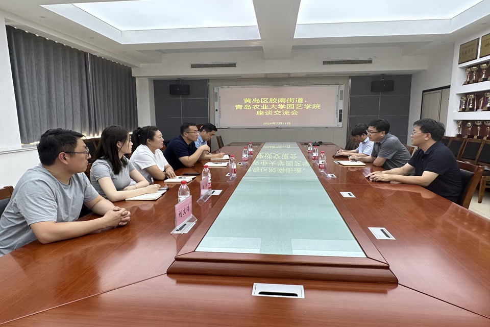 7月11日,黄岛区胶南街道办事处副主任王海霖、胶南街道虎背山路社区党委书记管富世、胶南街道李家洼子股份经济合作社党支部书记郭胜燕来到太阳成集团tyc33455进行座谈交流,座谈交流会由学院副书记、副院长孙海涛主持,太阳成集团tyc33455教授、农业农村部农产品质量安全专家组专家聂继云老师,太阳成集团tyc33455副教授、第一党支部书记李鼎立老师参加座谈。