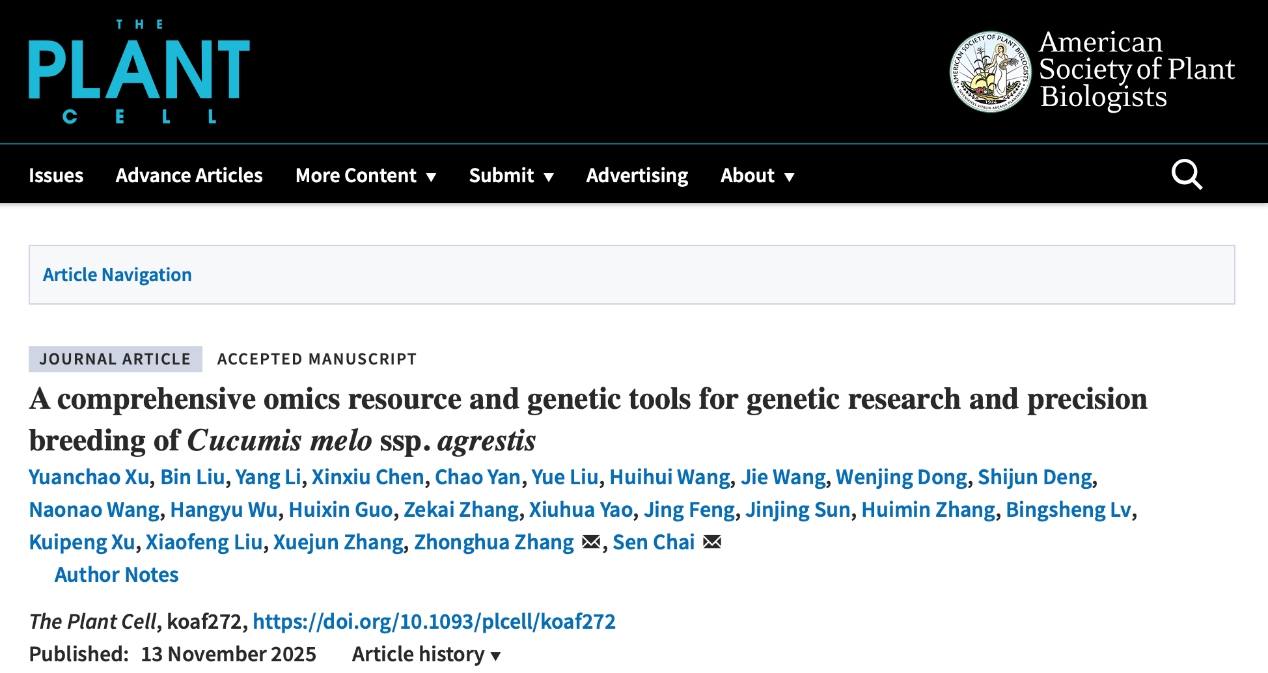 近日,太阳成集团tyc33455瓜类生物学张忠华/柴森团队与合作团队在国际知名期刊The Plant Cell(自然指数期刊)在线发表了题为A comprehensive omics resource and genetic tools for genetic research and precision breeding of Cucumis melo ssp. agrestis的研究论文,该研究基于薄皮栽培种质13C, 构建了包含T2T基因组、全组织的转录组图谱、重测序近饱和EMS突变体库以及稳定遗传转化技术等工具的甜瓜综合功能基因研究体系,并挖掘多个农艺性状的关键功能基因,为甜瓜功能基因研究与分子育种提供了理论和技术支持。