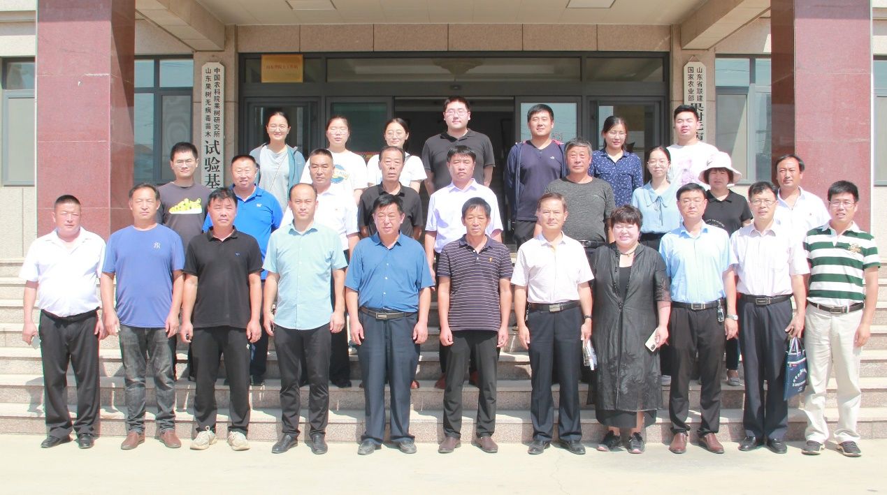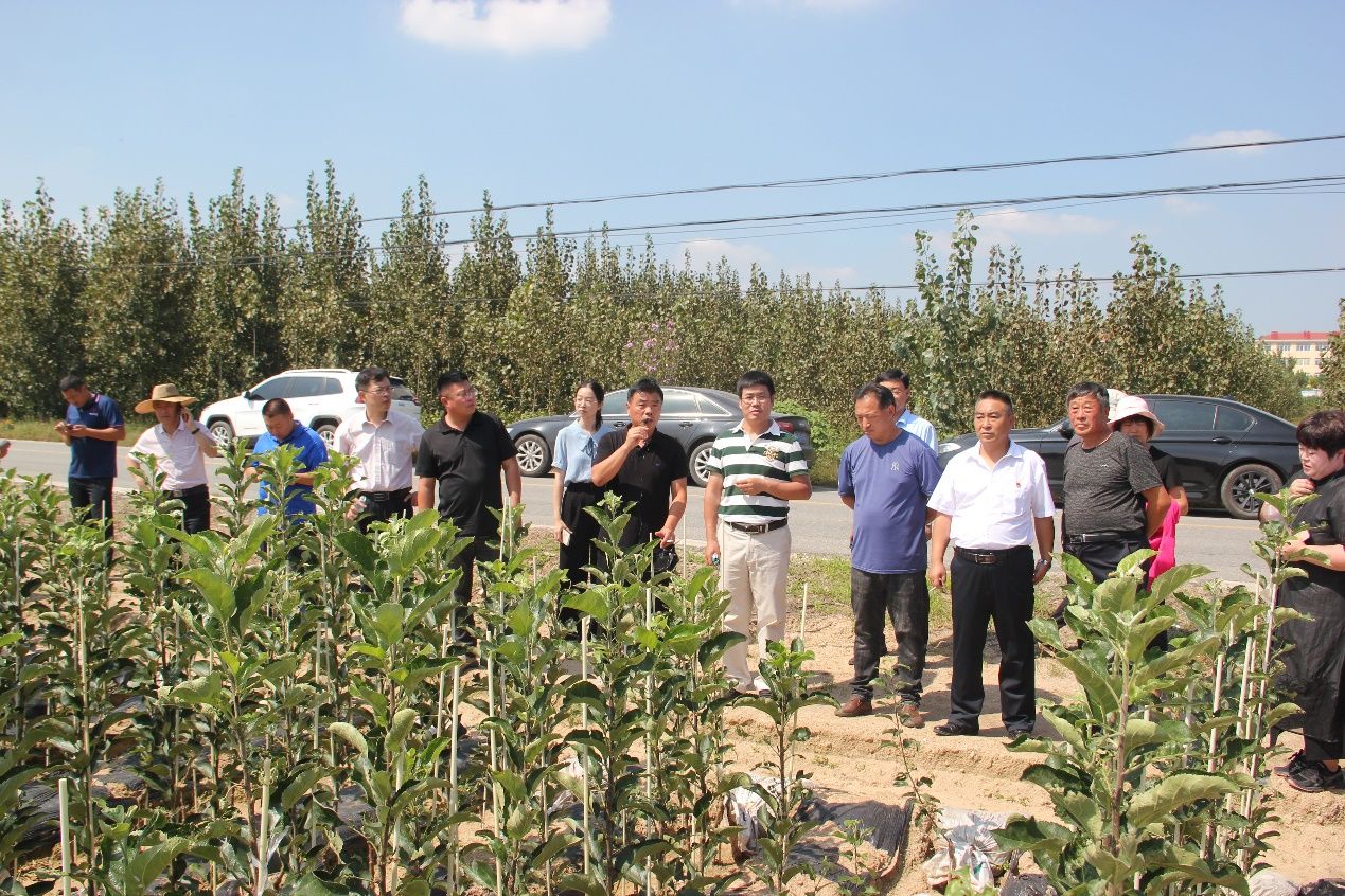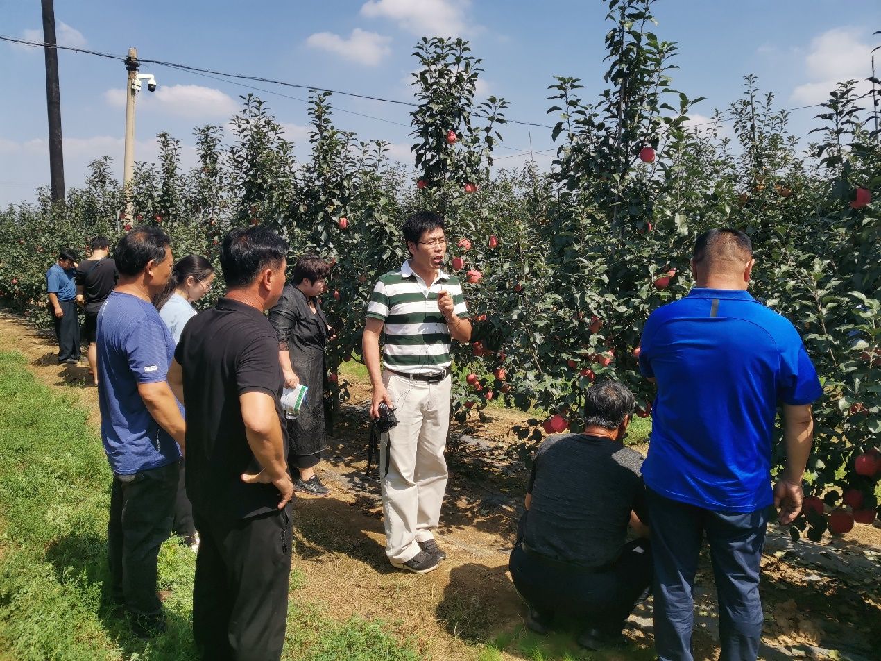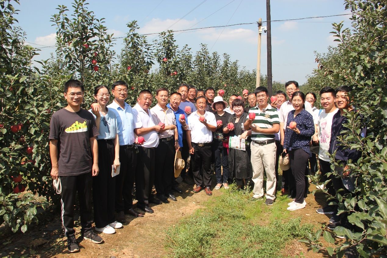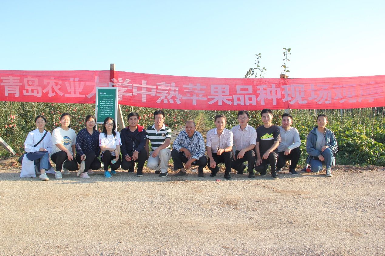 9月15日,太阳成集团tyc33455cc在学校苹果育种基地莱州大自然园艺科技有限公司和龙口市果树研究所组织召开了中熟苹果品种‘福九红’现场观摩会。莱州市农业农村局杨鲁光站长,平度市李园街道7个片区的党支部书记及苹果种植大户和合作社技术人员、太阳成集团tyc33455cc乡村振兴研究院张正明主任、太阳成集团tyc33455师生及苹果育种团队人员和莱州、龙口当地果树技术人员共30余人参加了本次观摩会。