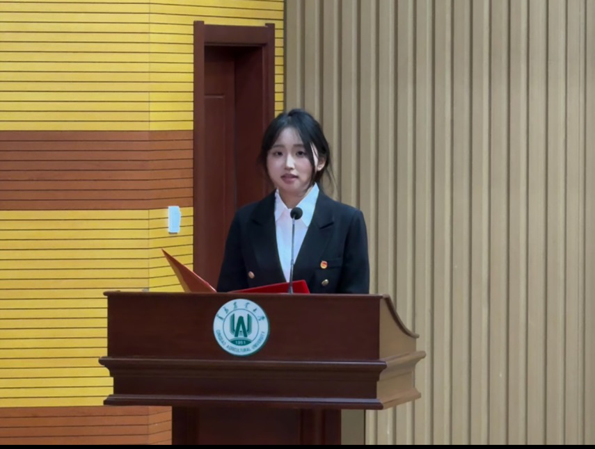 2025届研究生会执行主席张慧莹作就职报告,提出了本届研究生会工作的思路及工作重点,接下来将完善研究生会的规章制度,更好地为研究生服务。
