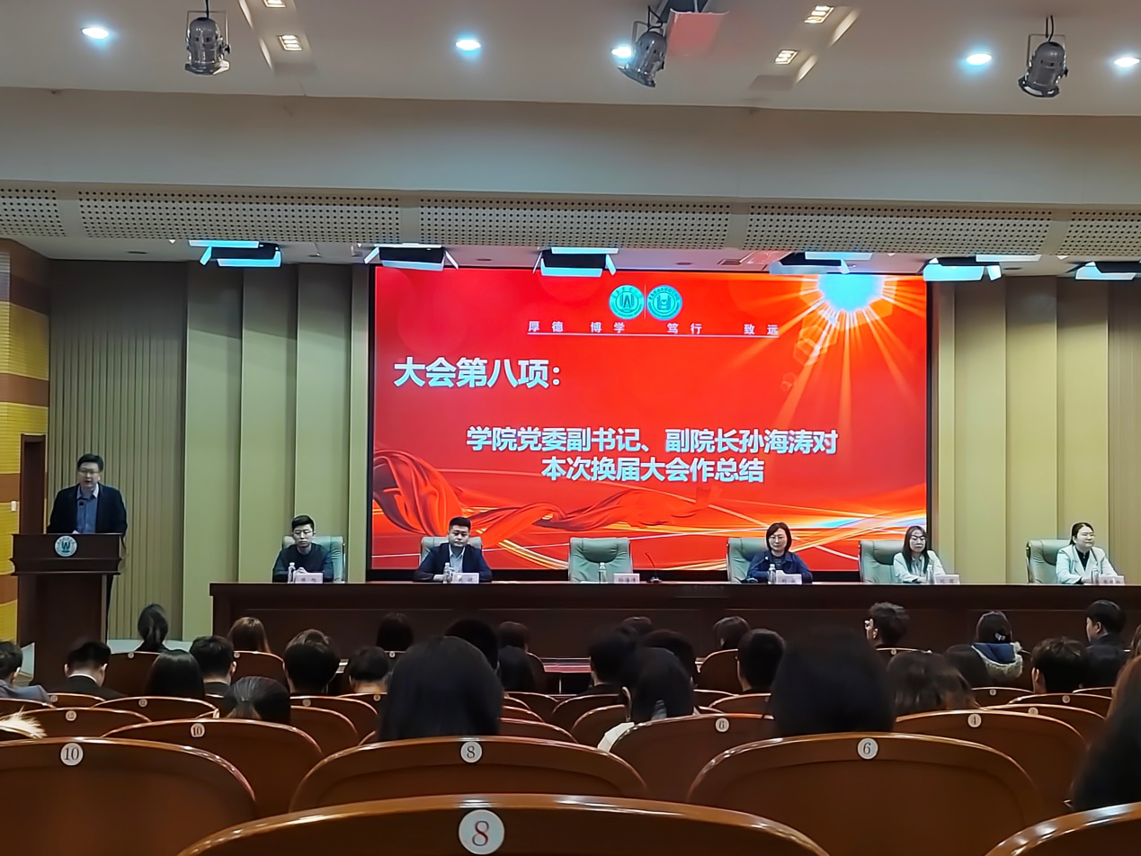 最后,学院党委副书记、副院长孙海涛作总结发言,并为学生组织讲授“开学第一课”。孙海涛总结回顾了上一届学生组织开展的工作和取得的成绩,分析了目前学生工作面临的新形势、新机遇与新挑战,同时也指出了目前学生干部存在的问题。勉励广大学生干部要保持脚踏实地的工作作风,在自我管理、服务学院发展的征程中主动担当、积极作为,为推动学院各项事业高质量发展贡献青年力量。