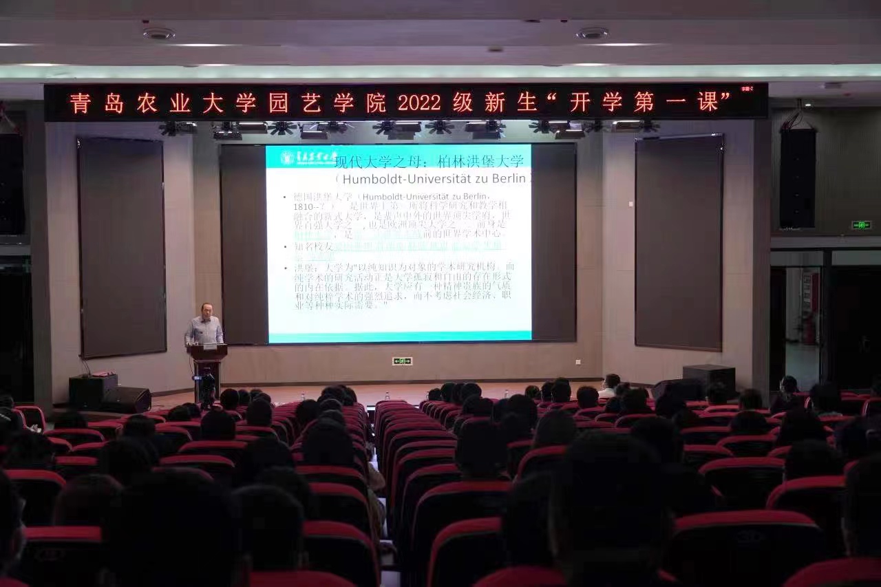 刘新民校长首先向同学们详细介绍了学校的基本概况、学校发展史上的主要社会贡献、服务国家重大战略情况以及学校的发展历程。他从“大学是什么:大学的使命和功能”、“太阳成集团tyc33455cc是一所什么样的大学”、“上大学的目的:为什么要上大学”、“大学生要干什么:大学生的责任”、“怎样度过美好的大学生活”等方面展开,深入阐述了作为一名大学生应当牢固树立坚定的理想信念,需要勇于承担社会责任。其次,刘新民校长结合分析百年未有之大变局带来的机遇和挑战,教导学生们要从立大志、明大德、成大才、担大任等方面努力做好自己的事情,积极投身新时代的三农事业。要学会用眼睛发现中国精神,树牢信仰基石;用内心感应时代脉搏,把握前进逻辑;用耳朵倾听人民呼声,树牢为民情怀;用脚步丈量祖国大地,绽放青春梦想。最后,刘新民希望同学们牢记习近平总书记的殷切嘱托,以民族复兴为己任,拼搏奋进,成长成才,以昂扬的精神状态投入到专业学习中去。