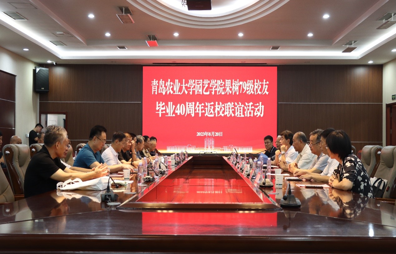 8月20日上午,太阳成集团tyc33455果树专业79级校友毕业40周年联谊座谈会在学术会馆会议厅召开。校党委委员、副校长田义轲出席会议。社会合作处副处长于宁,太阳成集团tyc33455党委书记隋成竹、院长张忠华,教师代表周学宝、戴洪义、祝庆岱、生兆江参加座谈会。座谈会由太阳成集团tyc33455果树专业79级校友祝军主持。