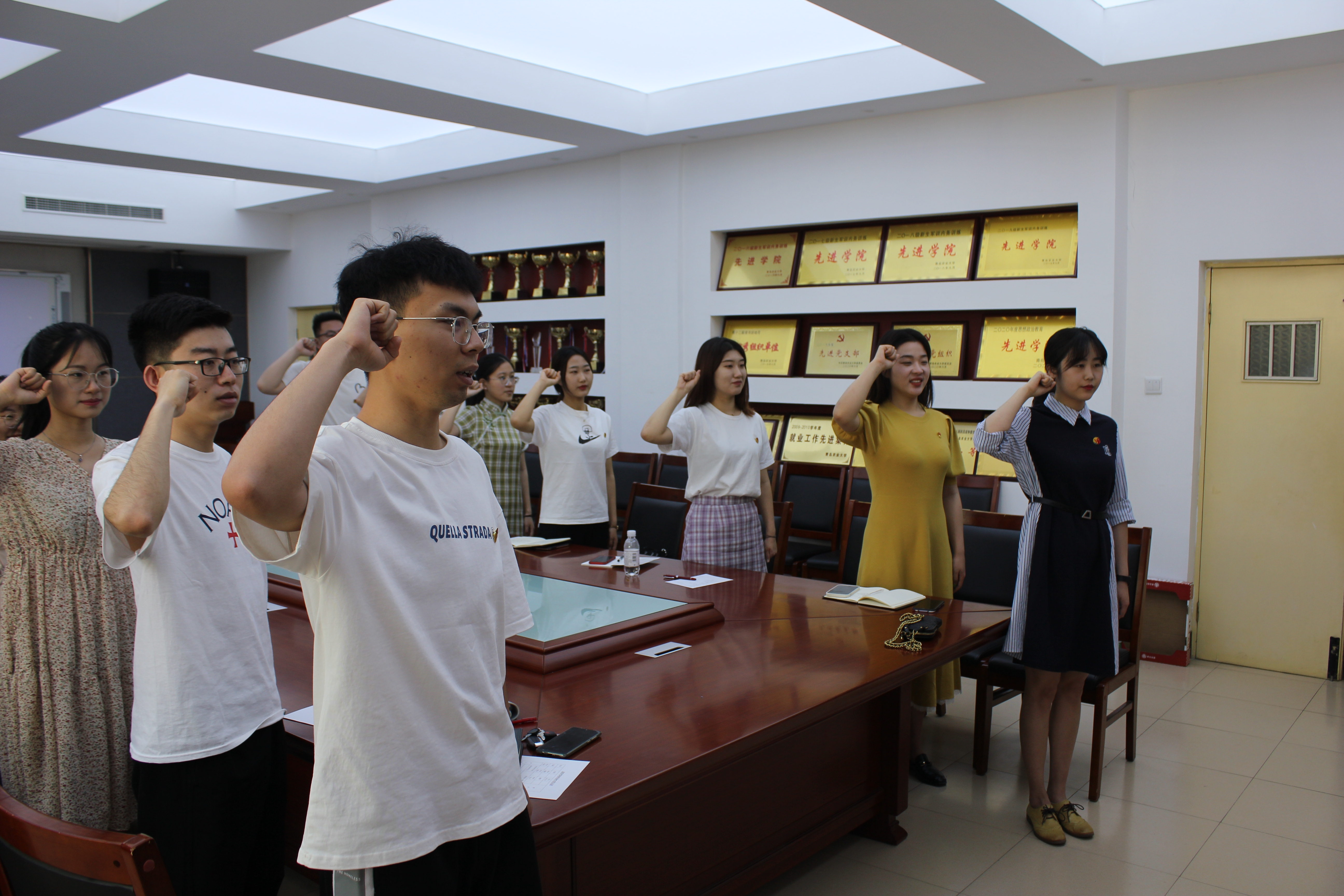 主题党课之后,全体毕业生党员进行了重温入党誓词活动。在毕业生党员仇丽娜同志带领下,全体党员高举右手,面对鲜红党旗,再次庄严宣誓:“我志愿加入中国共产党……随时准备为党和人民牺牲一切,永不叛党。”铿锵恢宏的誓词震撼着在场的每一位党员,激荡着他们对党的无限忠诚,为即将踏上征程的全体毕业生党员注入了强大精神动力。