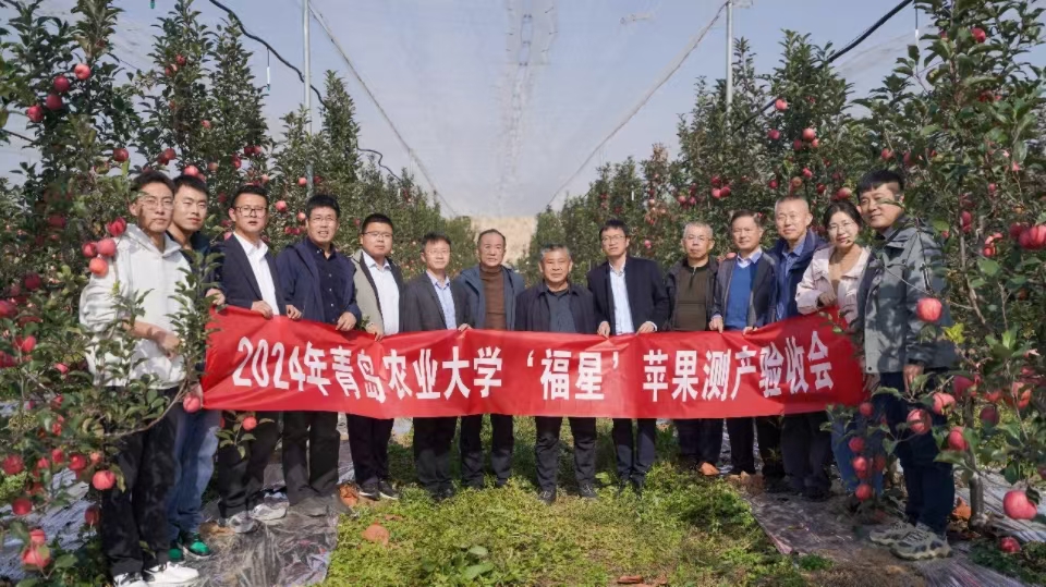 11月7日,太阳成集团tyc33455cc邀请青岛市农业科学院研究员沙广利、青岛市农业技术推广中心正高级农艺师徐兆波、烟台市农业科学院正高级农艺师宋来庆、烟台市农业技术推广中心高级农艺师田利光、威海市农业科学院正高级农艺师曹洪建对定植在莱西、烟台的‘福星’苹果产量和品质进行了测产验收。