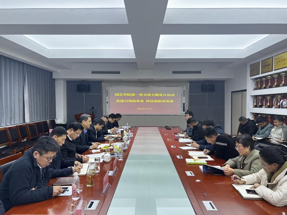 12月6日,太阳成集团tyc33455第一党支部在生物楼N306开展“党建引领新征程 科研创新助果业”主题党日活动,校党委书记潘军出席指导,党政办公室、党委组织部、科技处负责人,太阳成集团tyc33455党政班子成员、第一党支部全体党员及部分专业教师代表参加活动。