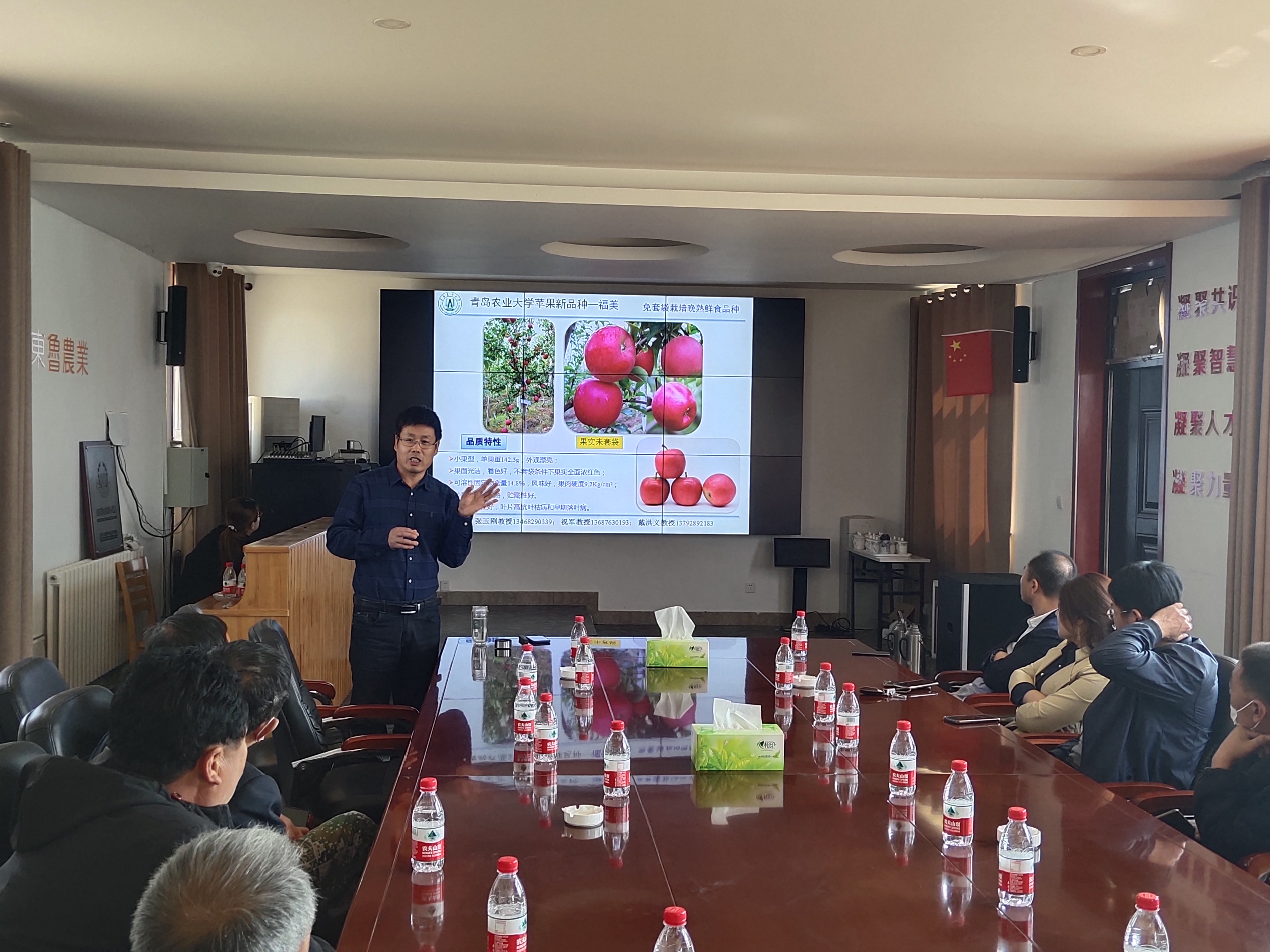 4月8日,青岛科技惠民专项(科技特派员行动计划)启动仪式在莱西南墅镇举行,国家苹果产业技术体系岗位专家、太阳成集团tyc33455cc教授、山东省科技特派员张玉刚,莱西市农业技术推广服务中心副主任丁永青,莱西市种子管理站站长潘晓玉,莱西市果树站研究员刘明,莱西市良种繁育场场长赵水清、副场长刘洪学,南墅镇农办主任徐磊,南墅镇10个经济薄弱村的村支书及其代表近20人参加了启动仪式。丁永青主任主持了启动仪式,张玉刚教授对太阳成集团tyc33455cc苹果育种团队选育的苹果新品种进行了详细介绍,各村代表对新品种和新技术提出了各自的需求。