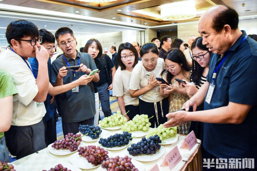 在这其中有5个品种来自青岛本地,它们是平度大泽山江北葡萄研究所选育的具有浓郁的玫瑰香味的玉波二号、玉波七号、玉波十号,和具有奶油香味玉翡、玉翠,美味的新感受让现场不少专家都竖起了大拇指。同时其他省市相关机构带来的葡萄成果都各具特色,外观口感甜度俱佳,比如张家港市神园葡萄选育的“园苹果”具有明显的苹果香味,给现场的品尝者带来了不一样的感受。