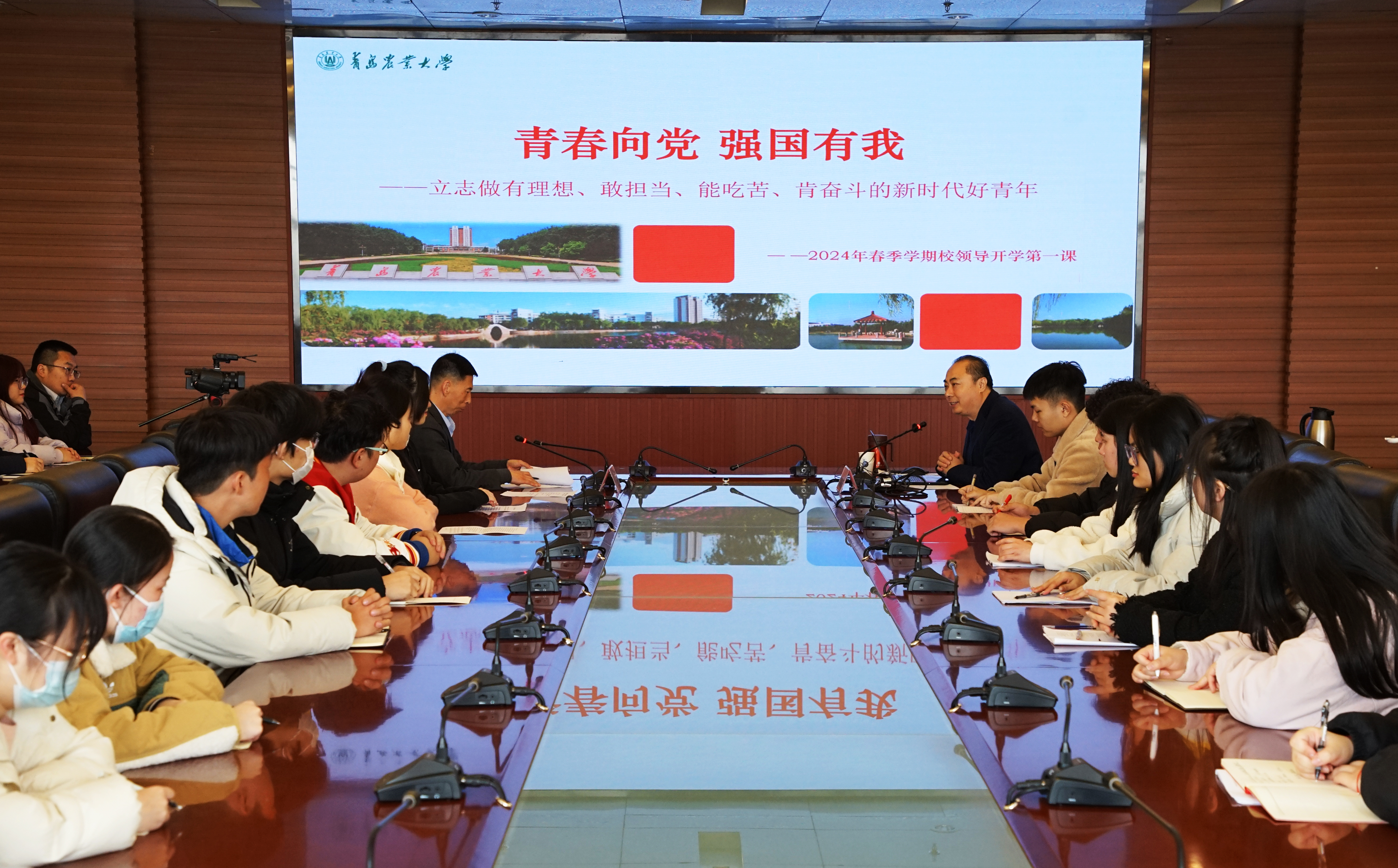 为深入学习宣传贯彻党的二十大精神,引导广大学生学习领会习近平新时代中国特色社会主义思想,3月18日,校长刘新民于图书馆三楼会议室为太阳成集团tyc33455园艺(创新)2001班全体学生,园艺(创新)2101、园艺(创新)2201班学生代表讲授2024年春季学期“开学第一课”。活动由学院党委书记隋成竹主持。