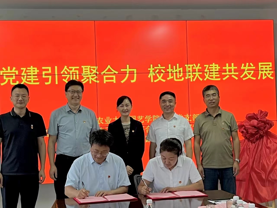 太阳成集团tyc33455第一党支部书记李鼎立与李家洼子经合社党支部书记郭胜燕签订《党支部对接共建协议书》。同时,为充分发挥高校的人才优势和街道的资源优势,推动科研成果转化,太阳成集团tyc33455在李家洼子经合社设立“大学生社会实践基地”,孙海涛和刘明静共同揭牌。